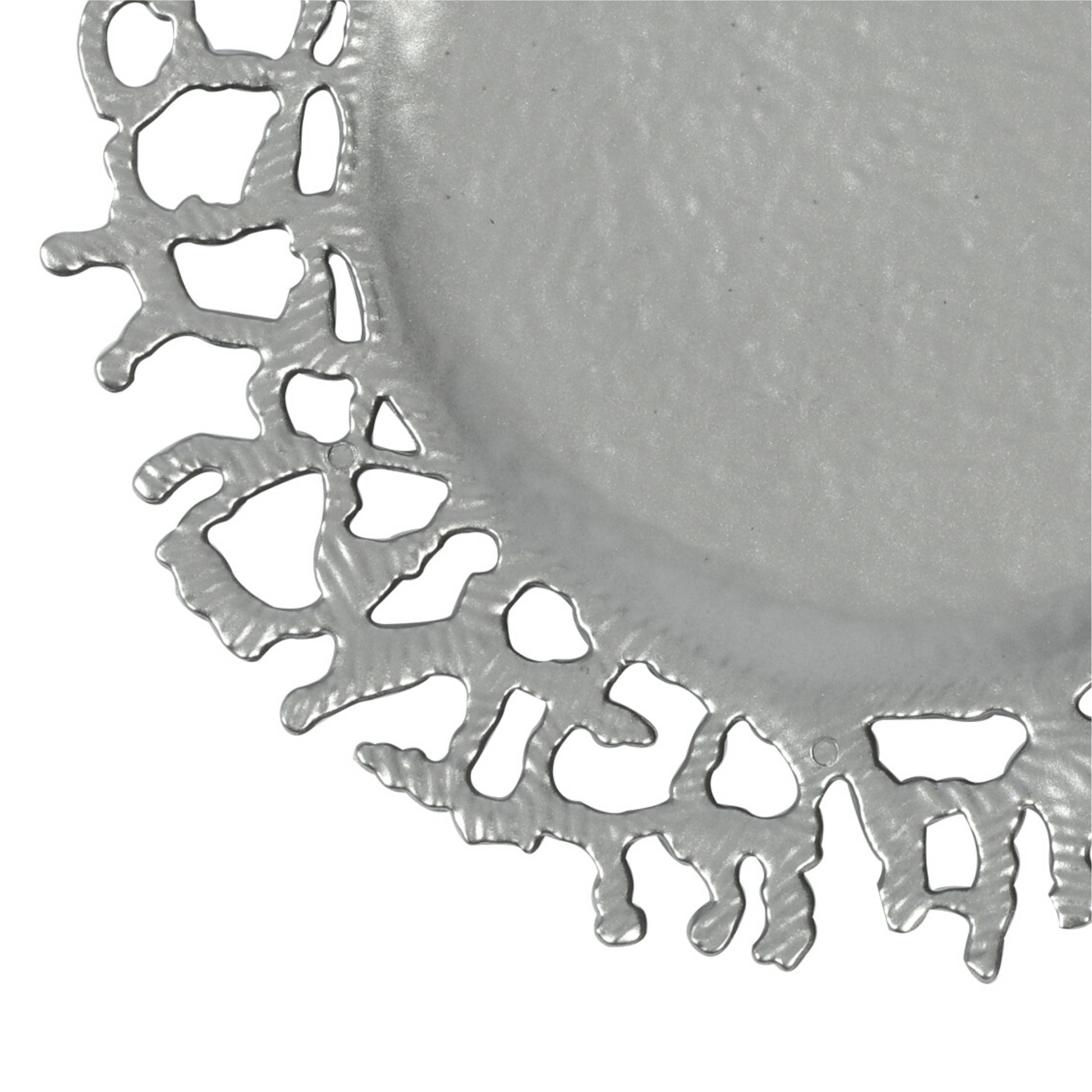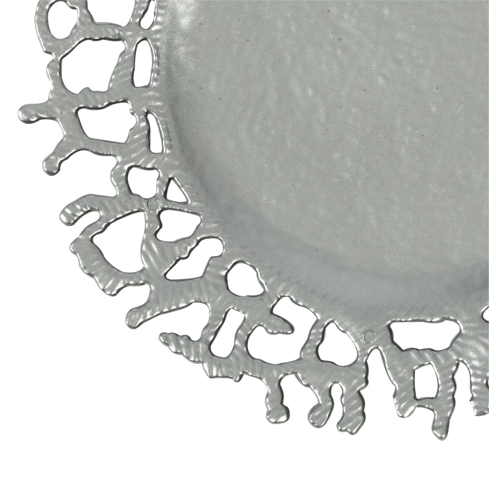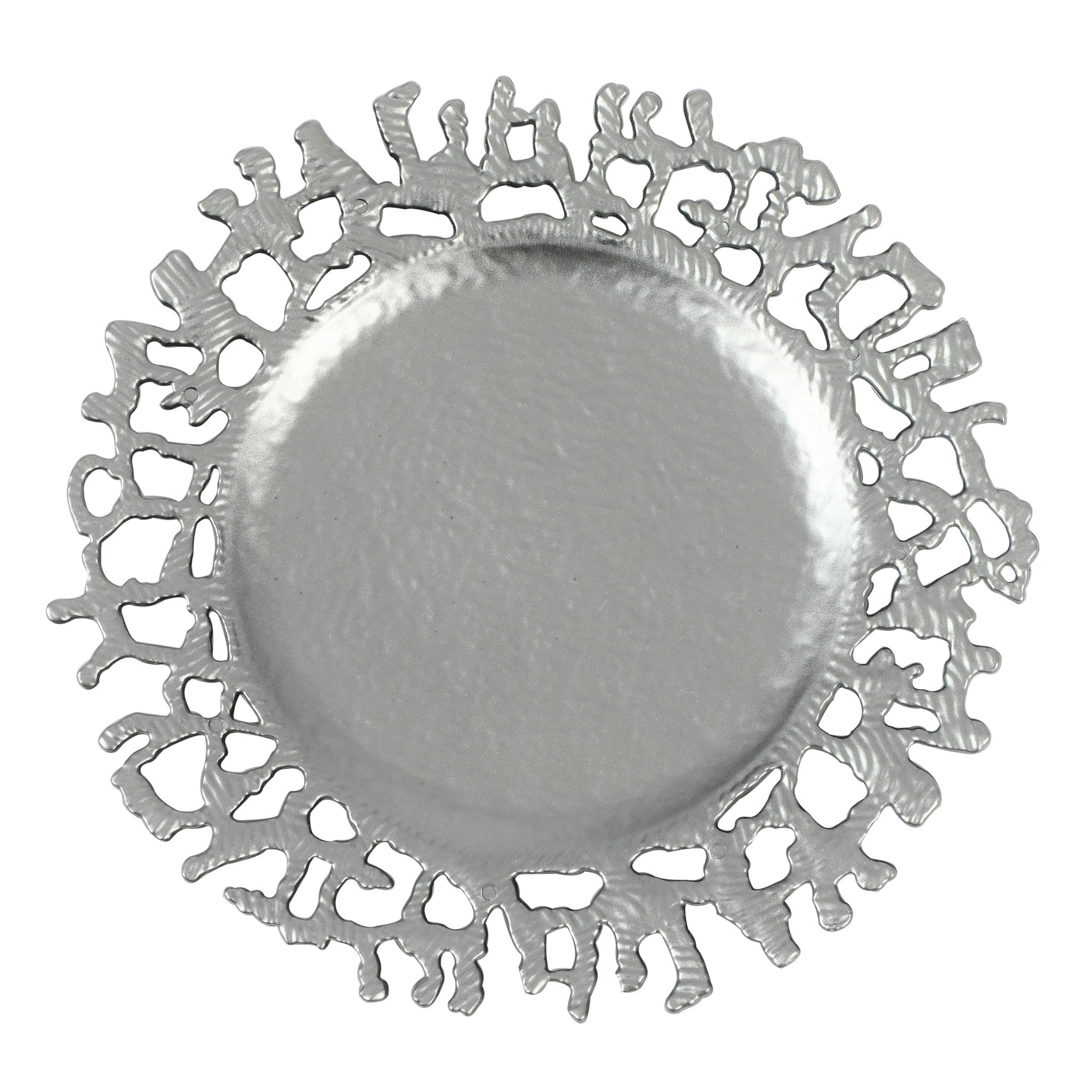 Dress your party tablescape with our stunning Branch Molten Acrylic Charger Plate in Silver and dine in style and sophistication.
