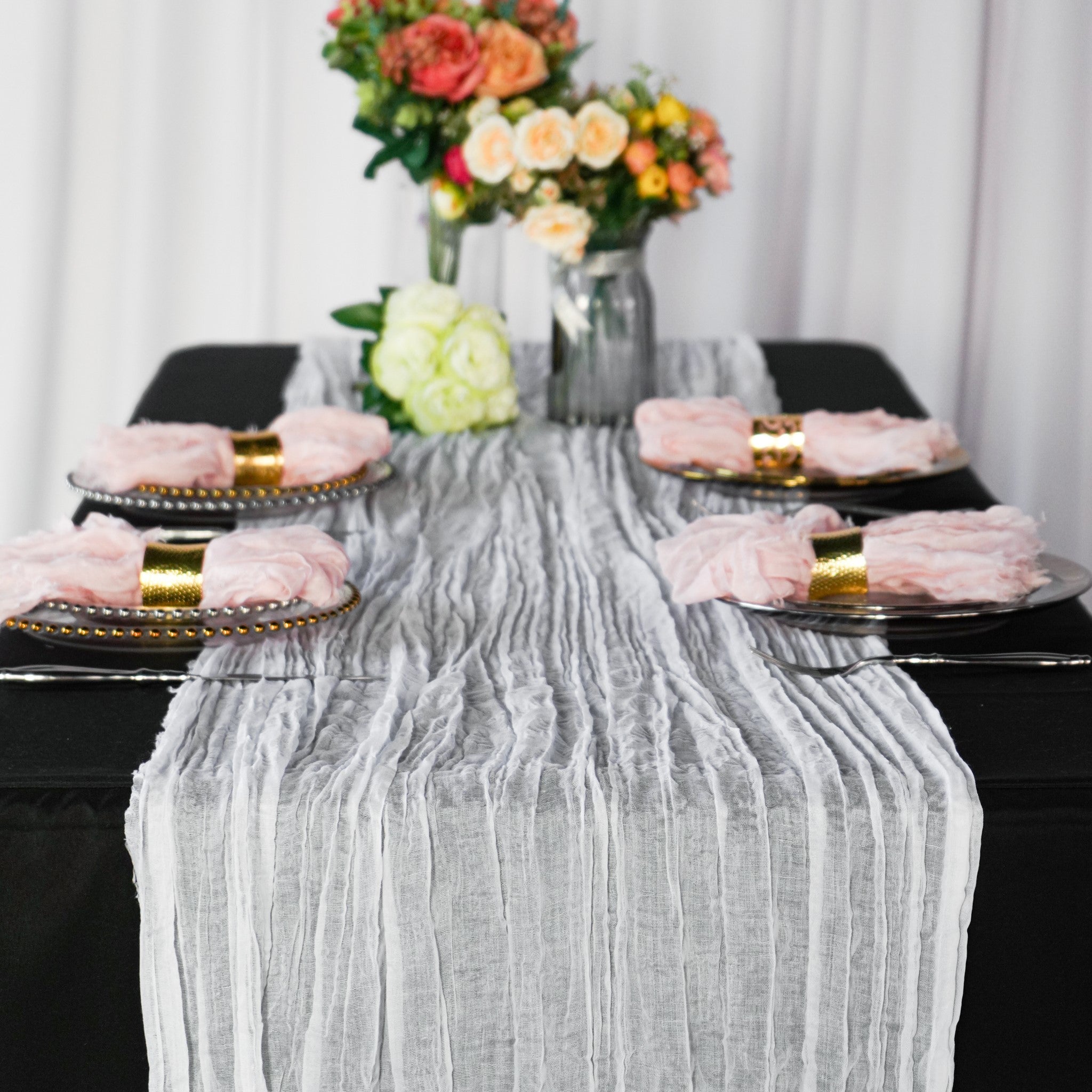 Cheesecloth napkins are a very versatile decor piece. You can't go wrong when you use cheesecloth napkins for wedding decor. It can be used for a luxe vibe in formal dinner parties and also for a more casual bohemian vibe.