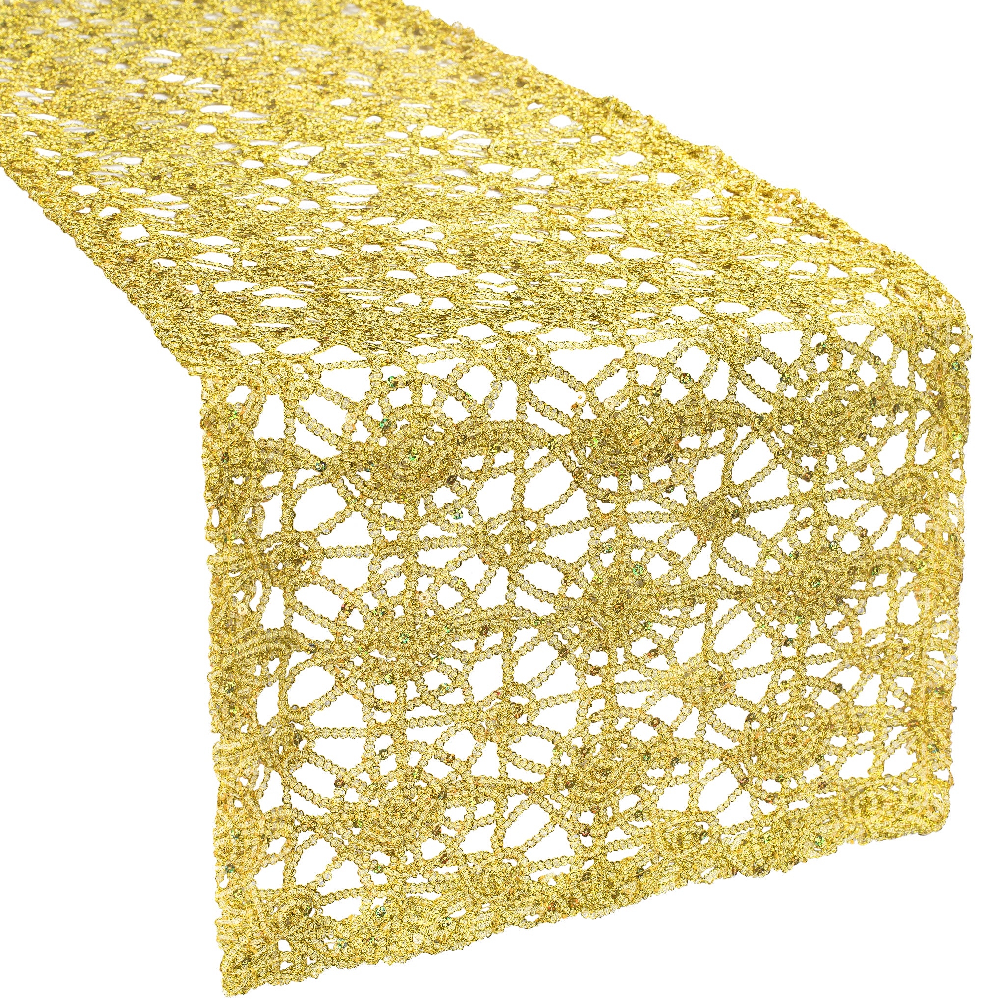 Our sleek gold table runner is meticulously crafted from high-quality chemical lace. Guaranteed to look good and to last, this product is perfect for any gathering. With its durability and elegance, this choice effortlessly enhances the atmosphere of every event.