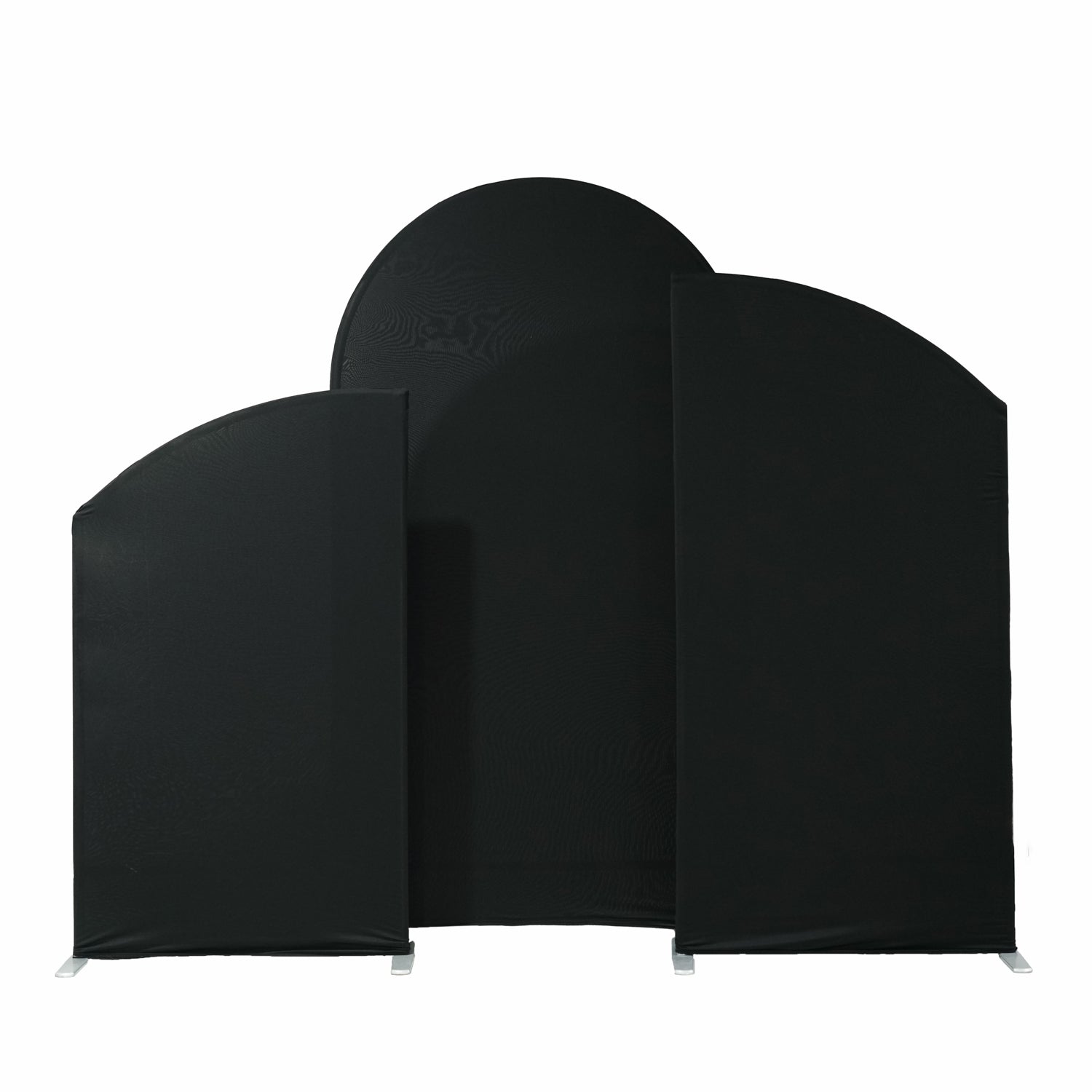 Embellish your CV Linens Chiara Arch Frame Backdrops with Stretch Spandex Covers in Black. This incredible Chiara backdrop cover replacement offers a hassle-free experience, thanks to its effortless stretching properties, providing a tailor-made snug fit for the backdrop.
