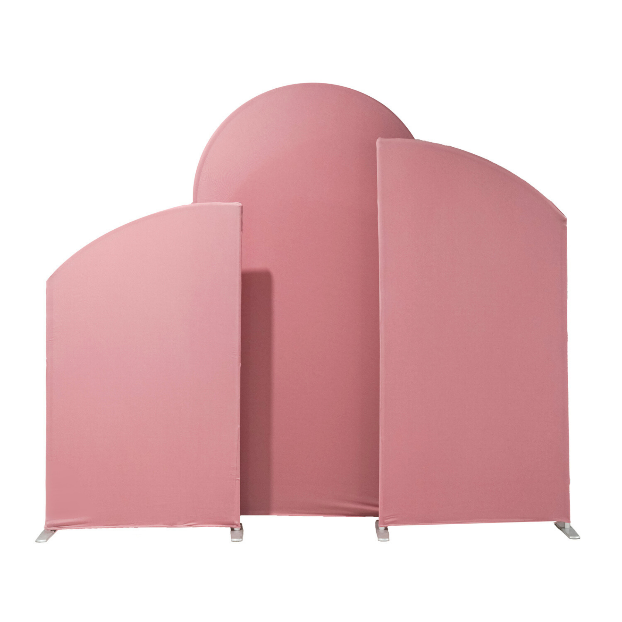 Stretch backdrop fabric in dusty rose/mauve is designed to perfectly fit your chiara arch frame backdrop stands. Just slip them over the stands and voila! You've got a stunning backdrop ready to impress your guests. Enjoy a stress-free decorating experience with these super convenient and user-friendly spandex covers.