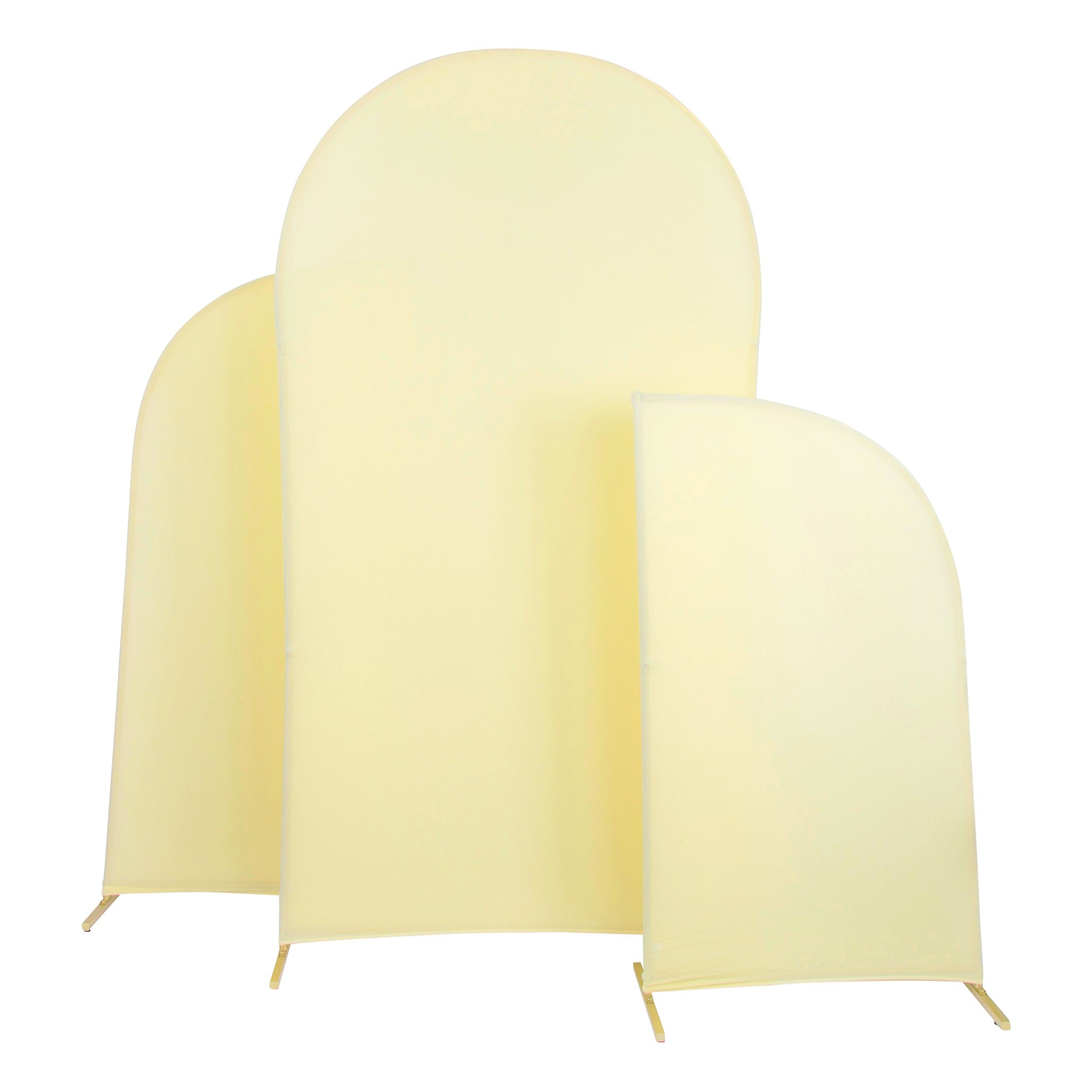 Looking for the perfect backdrop stand arch covers? Whether setting up an arch backdrop for a wedding ceremony, event reception, birthday party, shower, or any other special occasion, our Spandex Arch Covers for Chiara Frame Backdrop 3pc/set - Pastel Yellow creates the perfect party backdrop for pictures.