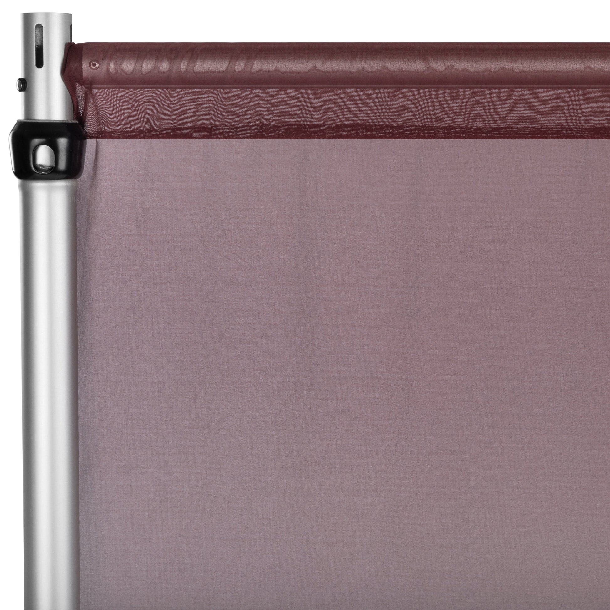 Our metal backdrop stand is an adjustable, heavy-duty backdrop stand kit that allows you to customize the height and width of your backdrop. It provides excellent stability and support, so you can confidently hang your Burgundy Chiffon Curtain Drape to create a captivating focal point for your event. This is essential for accommodating various event spaces and styles, providing the flexibility you need to create a captivating backdrop.