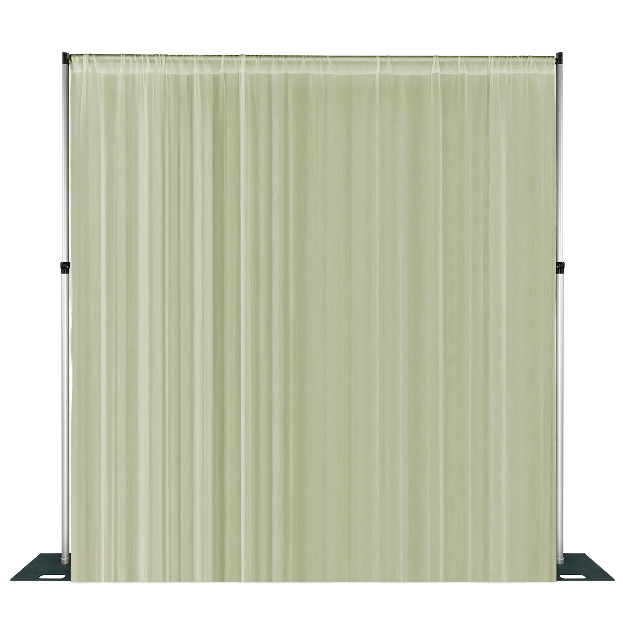 Our metal backdrop stand is an adjustable, heavy-duty backdrop stand kit that allows you to customize the height and width of your backdrop. It provides excellent stability and support, so you can confidently hang your Sage Green Chiffon Curtain Drape to create a captivating focal point for your event. This is essential for accommodating various event spaces and styles, providing the flexibility you need to create a captivating backdrop.