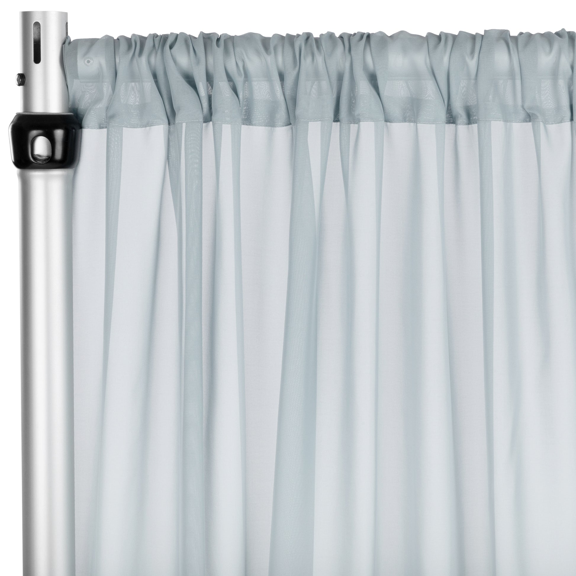 Our Chiffon Curtain Drape 14ft H x 58" W Panel - Dusty Blue showcases exceptional flow, and with its timeless style, it's an obvious choice to compliment all other decor. Boasting a superb drape, this curtain panel promotes a luxurious appearance preferred by professional photographers, event planners, and brides alike. The sheer, transparent nature of chiffon creates a flowing aesthetic that is great for draping ceilings or creating a canopy, as well as becoming a beautiful photo backdrop or ethereal window covering.