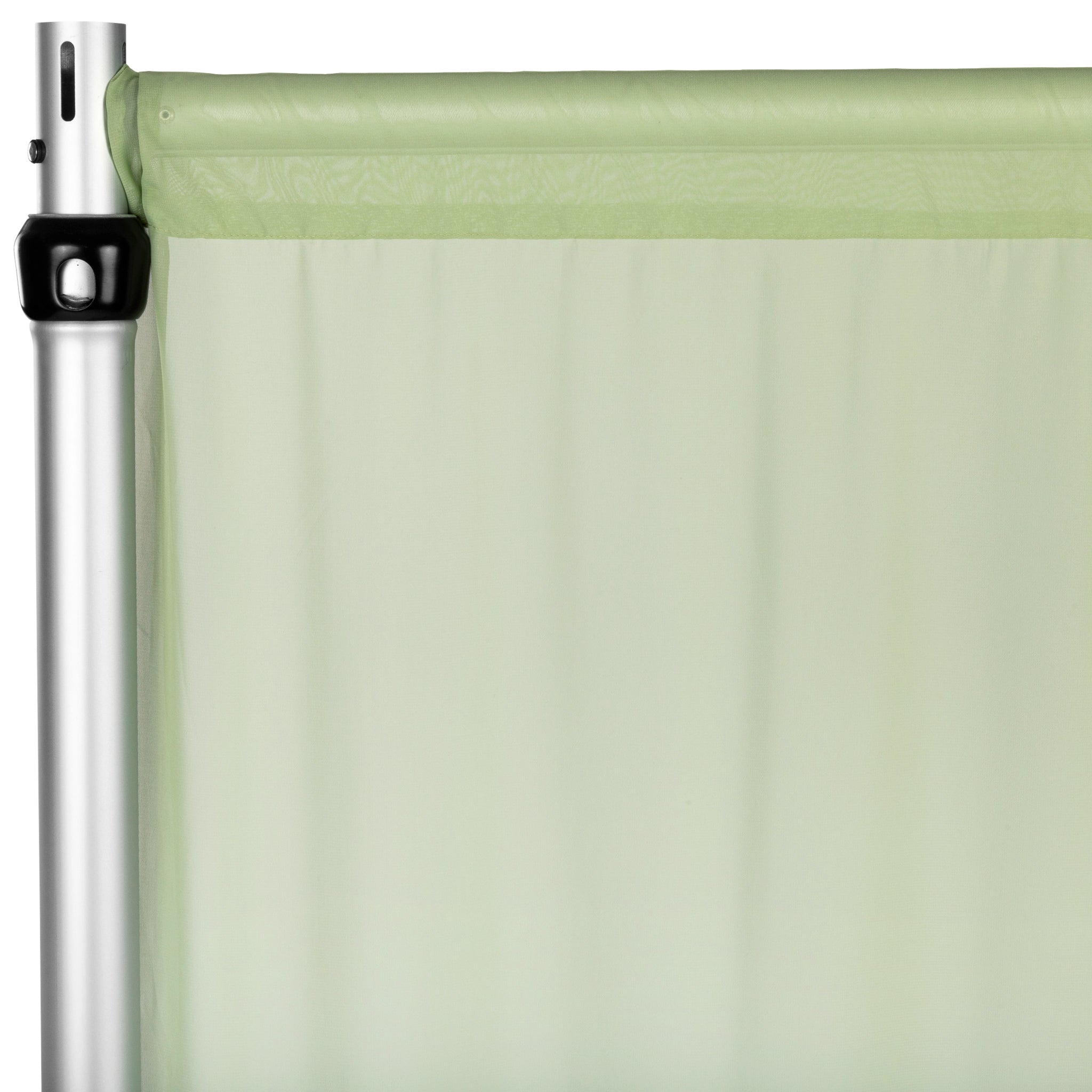 Our Chiffon Curtain Drape 14ft H x 58" W Panel - Sage Green showcases exceptional flow, and with its timeless style, it's an obvious choice to compliment all other decor. Boasting a superb drape, this curtain panel promotes a luxurious appearance preferred by professional photographers, event planners, and brides alike. The sheer, transparent nature of chiffon creates a flowing aesthetic that is great for draping ceilings or creating a canopy, as well as becoming a beautiful photo backdrop or ethereal window covering.