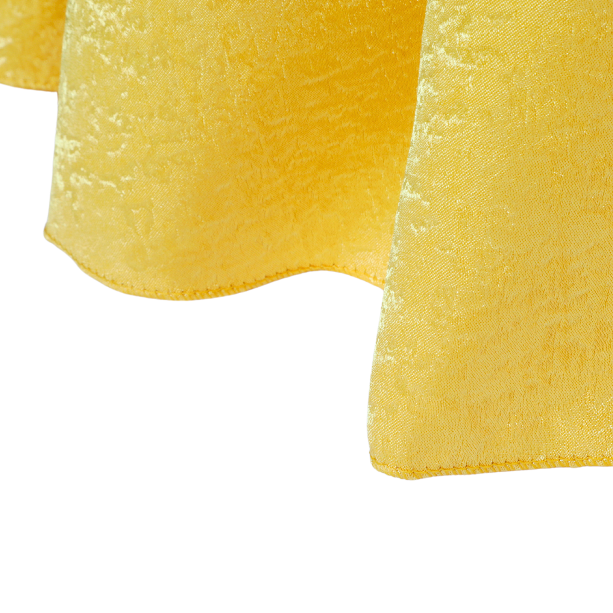Bring Home our Gold Crinkle Shimmer 132” Round Tablecloth