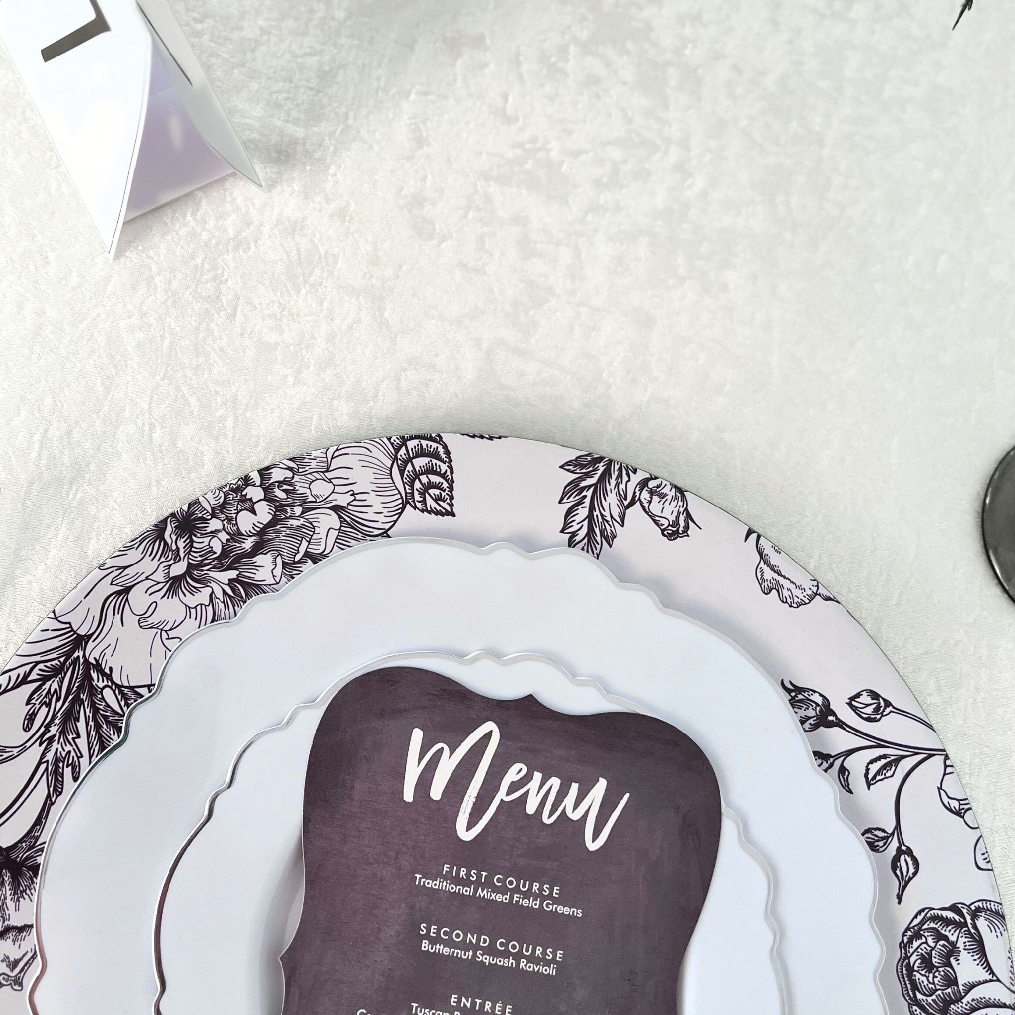 You can also pair your tablecloth with wholesale charger plates in metallic tones like gold or silver. These plates will add depth and dimension to each place setting, enhancing the elegance of the light ivory/off white tablecloth. Finish off the look with pearl napkin rings, which add a touch of sophistication and refinement to your napkin presentation.