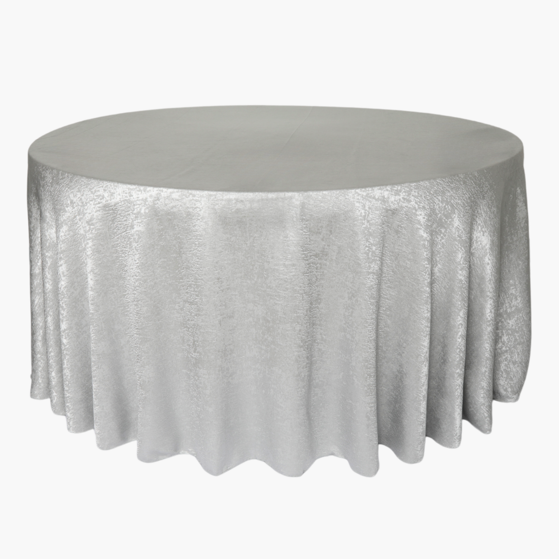 Bring Home our Silver Crinkle Shimmer 132” Tablecloth