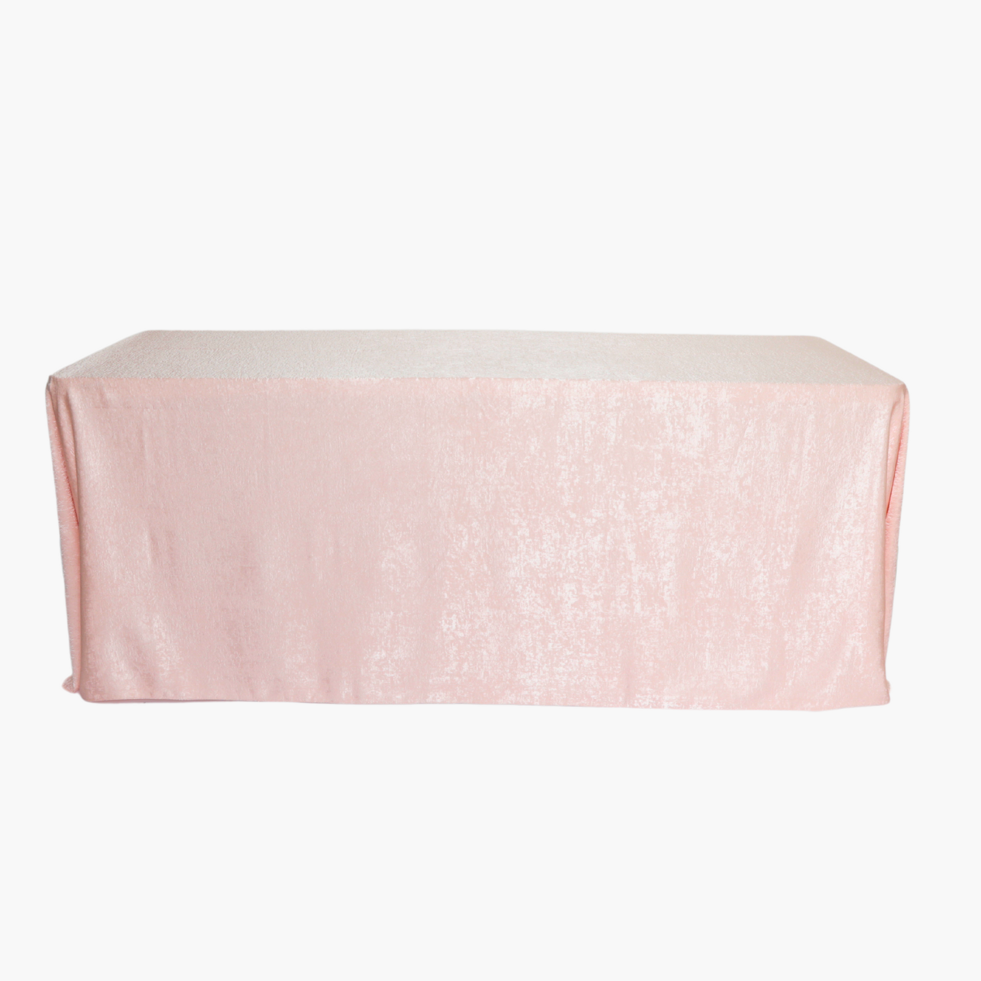Our blush shimmer tablecloths, adorned with delicate crinkle fabric, add a layer of visual intrigue to your event space. The subtle play of light on the crinkle fabric introduces a texture that captivates the eye. Blush tablecloths are the perfect choice for weddings, engagement parties, and intimate gatherings find an ideal match in the gentle hues of blush.