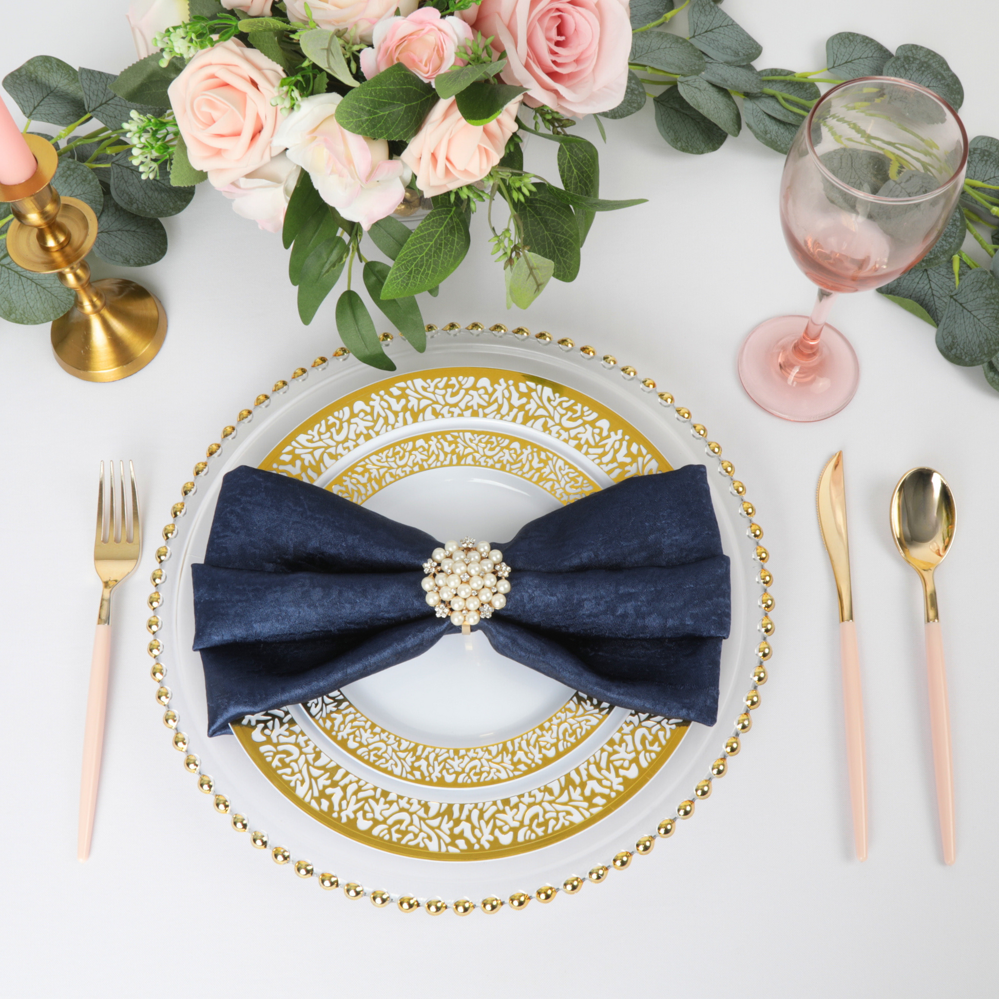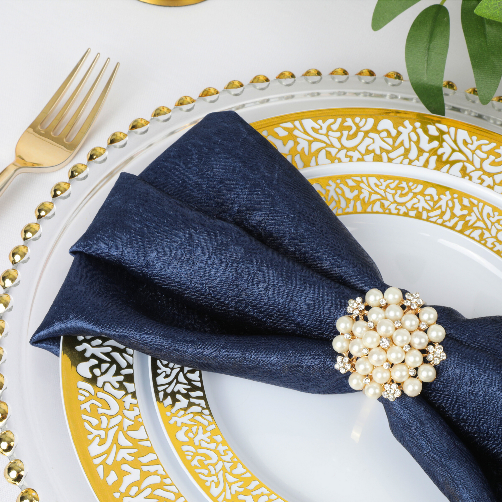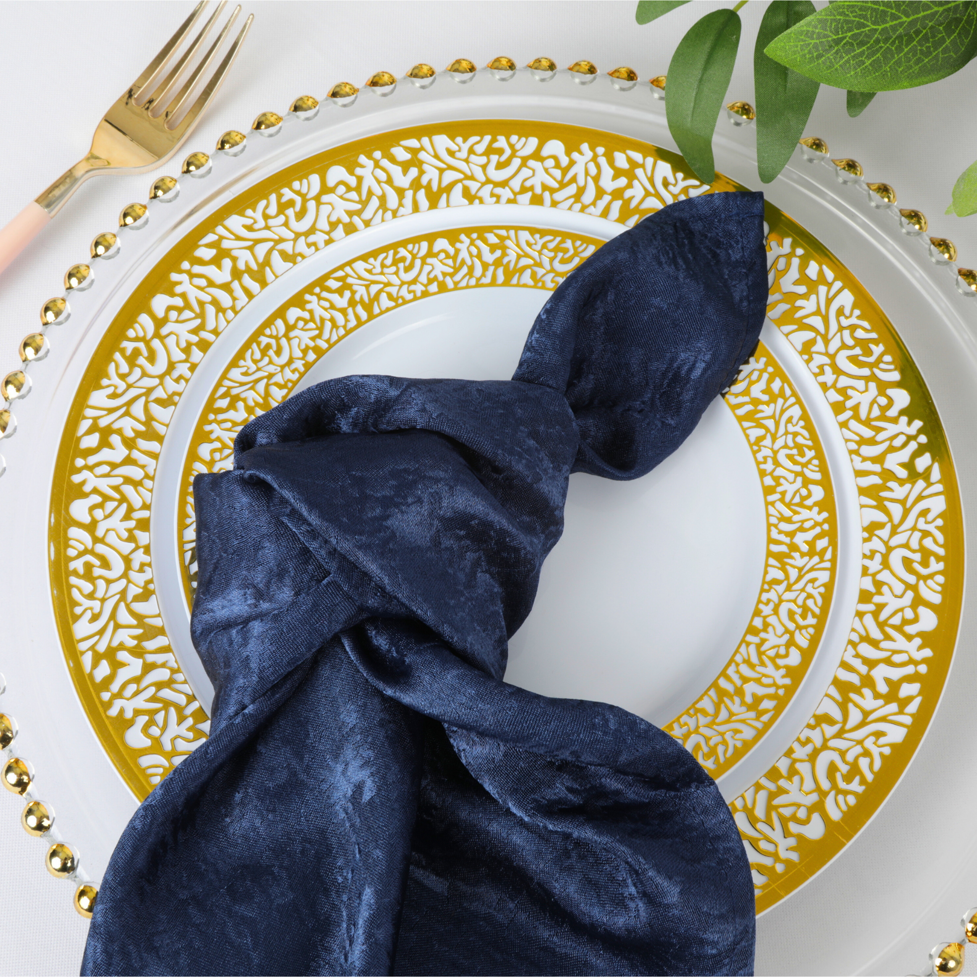 Napkins are considered the final decorative touch of a table setting beyond their practical functions. Enhancing this essential accessory, our 5-piece pack of Navy Blue Crinkle Shimmer 20”x20” Polyester Napkins provides the perfect solution for an elegant and functional dining experience.