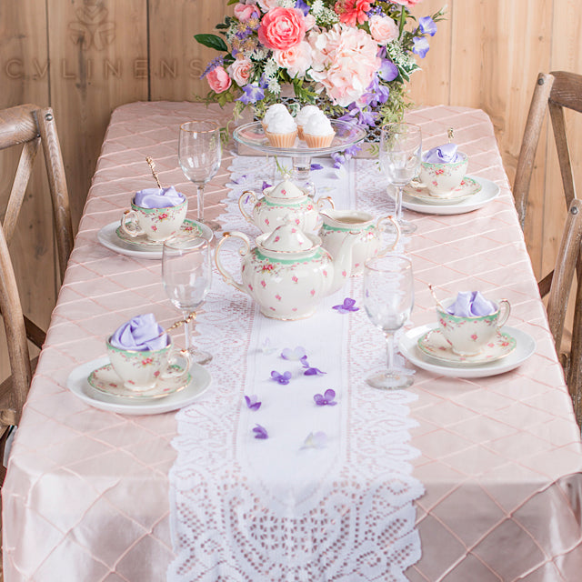 Don't forget to take a look at additional items in our Lace and Crochet Lace line including table runners, fabric rolls and bolts, chair bands, and table overlays.