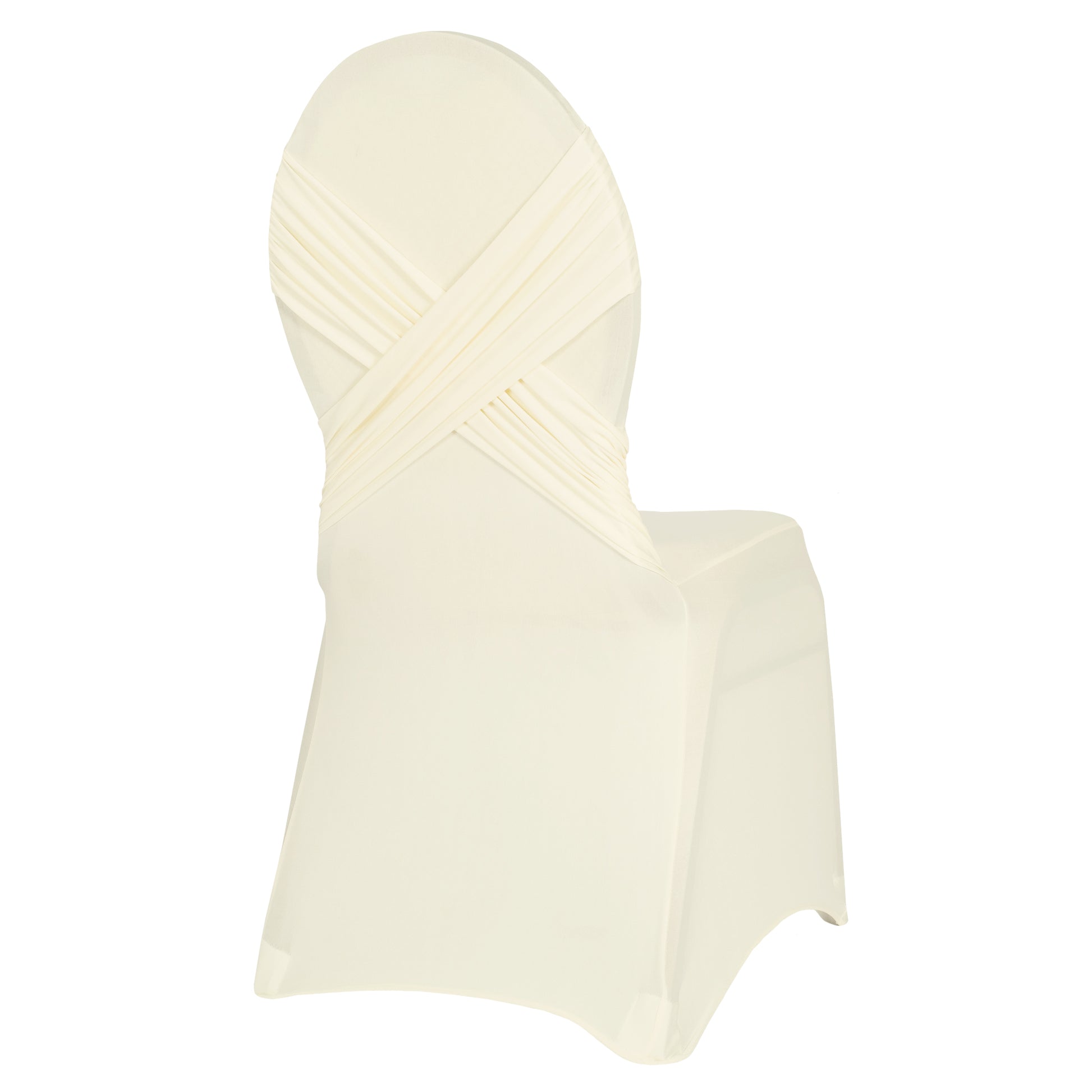 Give your banquet chairs the royal treatment with the princess-style glam of our Cross Back Stretch Spandex Banquet Chair Cover. Chair covers are a quick and easy way to add style to your party room in a silhouette befitting the sophistication of the occasion. Our special event chair covers add elegance to your wedding, anniversary, baby shower, or birthday party. Their fitted contour covers any imperfections on your venue chairs with full coverage, including four chair leg pockets that ensure a snug and professional fit at all times. The design does not require ironing since they stretch along the chair and so do not crease. Our swag back cover highlights a tailored and elegant look with fancy crisscross swagback detail. This spandex chair cover is just as perfect for highlighting a place of honor at the ceremony or reception as it is for creating a cohesive seating arrangement.