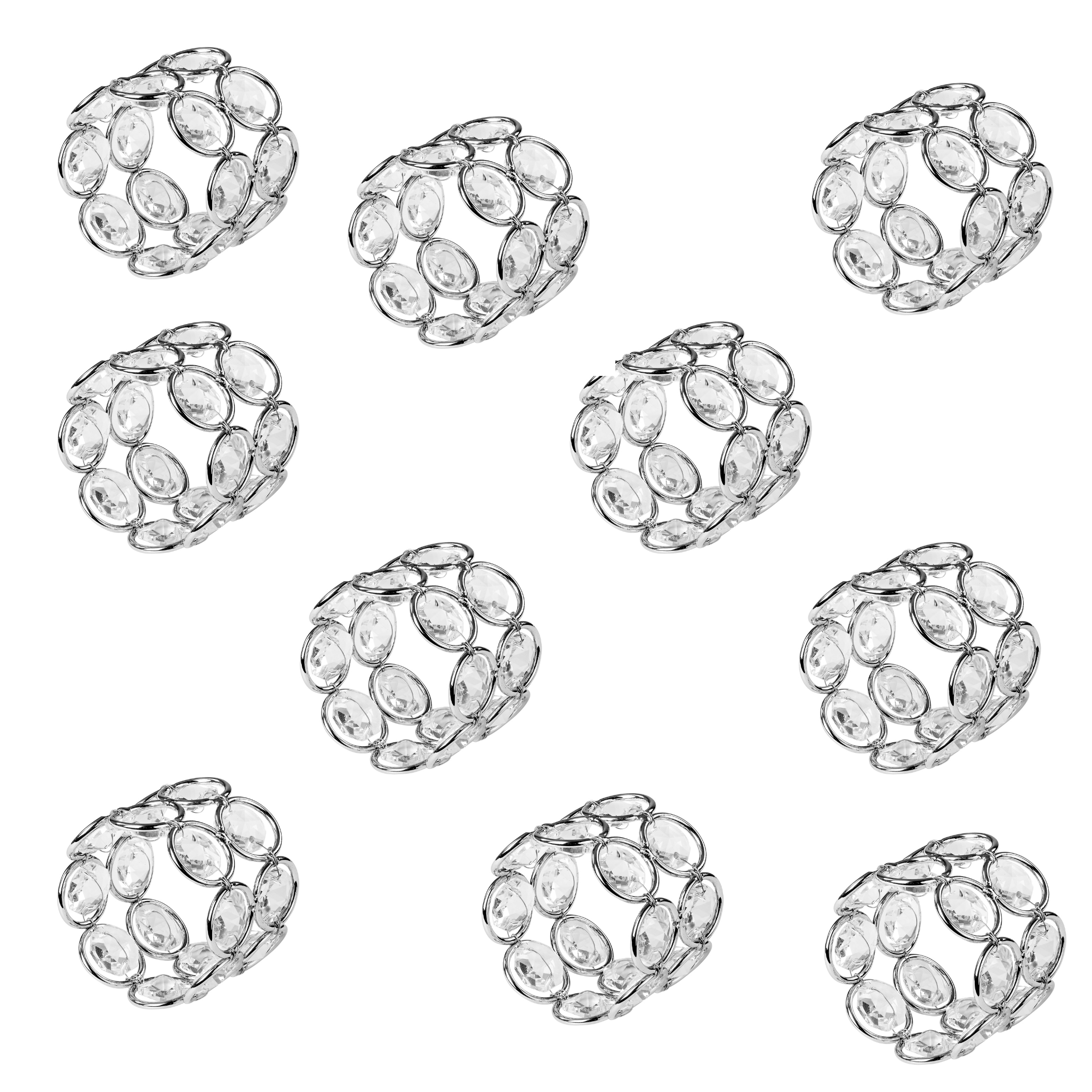 Add some extra glam to your tabletop decor with our gorgeous glass 10 pc Crystal Napkin Rings! Each dazzling wholesale napkin ring brings the perfect mix of flash and class to your place settings. If you're looking for an eye-catching accessory that provides a lot of luxury for a small price, our round Crystal Napkin Rings are what you're after.