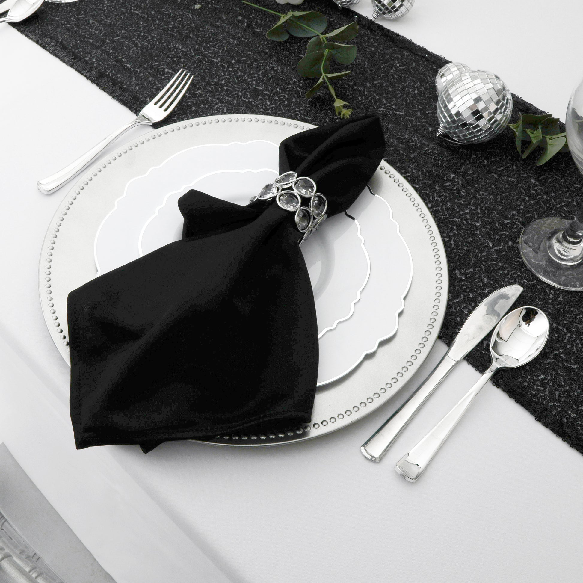 Our Crystal Napkin Rings are made up of two rows of dazzling acrylic crystals with a polished silver-plated base. Each acrylic crystal is secured in place by small metallic hoops, which means they're built to last and makes your event stress-free. Invest in our reusable crystal napkin rings to enhance your table decor for wedding receptions, baby showers, dinner parties, anniversaries, bridal showers, and more!
