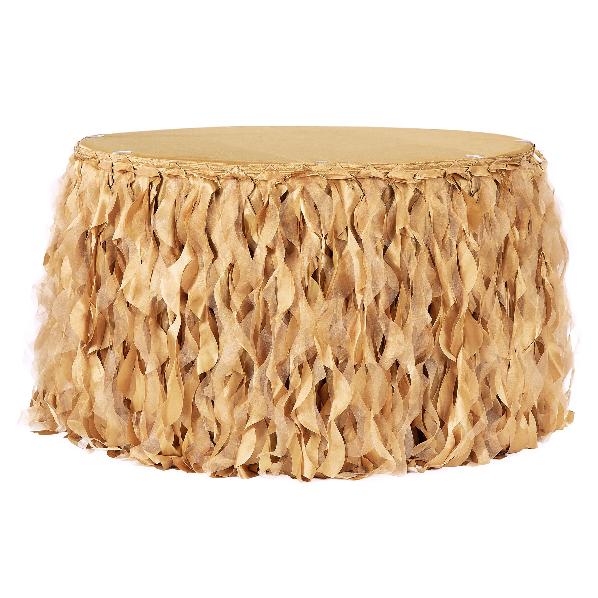 Our Curly Willow product line just became a little more fantastic with our New Curly Willow Table Skirts! Our new, updated Curly Willow design features the same whimsical look of spiraling taffeta and organza with a taffeta lining, only this time with a higher quality, more luxurious grade of material. As an added bonus, it's also available in stunning new colors! Our table skirts make a huge decorative impact at weddings, quinceaneras, birthday celebrations, and more by incorporating color and texture for a beautiful combination. As with traditional table skirts there is a 1" velcro strip sewn into the top, table-facing side, and a tablecloth or table topper will need to be purchased to cover the top of your table. Transform your event into a dreamy wonderland with our New Curly Willow Table Skirts!