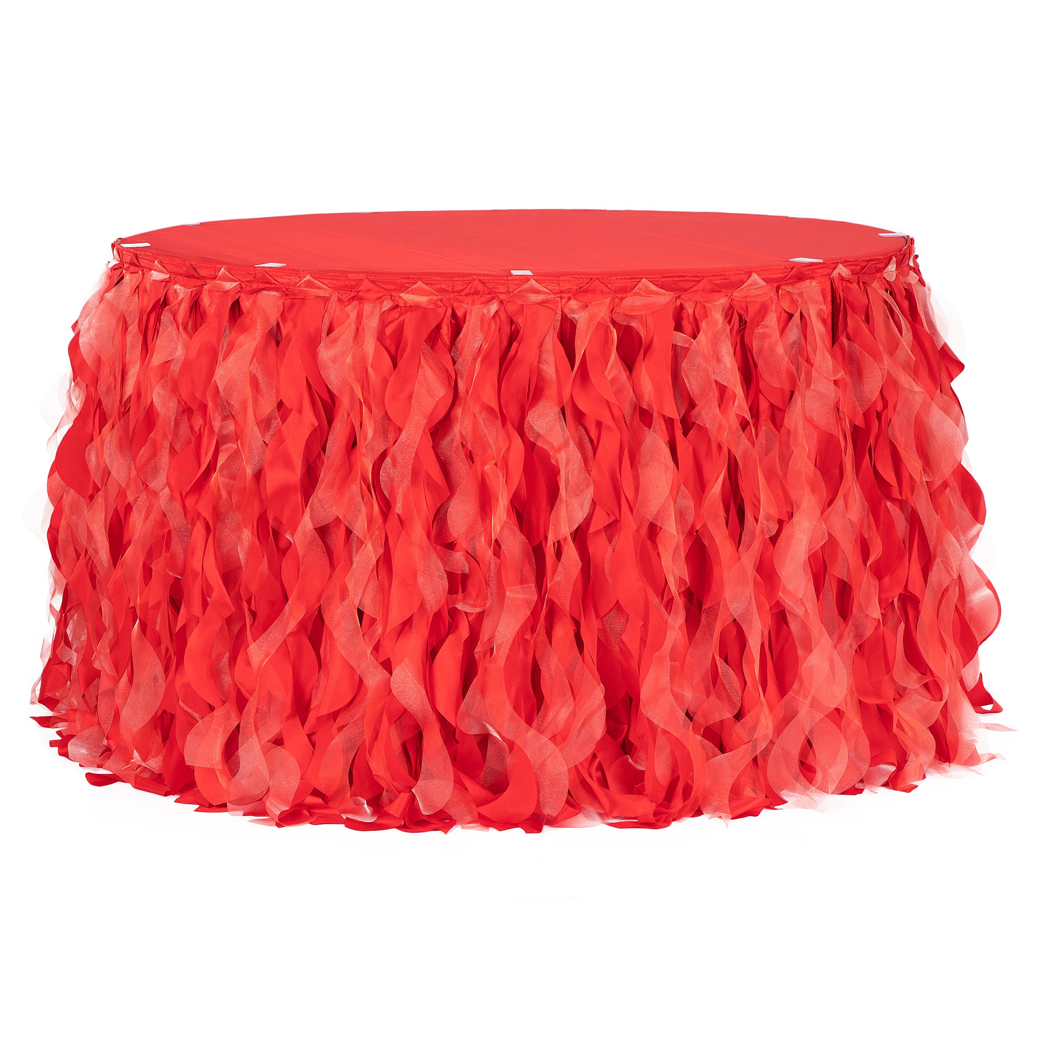 Our Curly Willow product line just became a little more fantastic with our New Curly Willow Table Skirts! Our new, updated Curly Willow design features the same whimsical look of spiraling taffeta and organza with a taffeta lining, only this time with a higher quality, more luxurious grade of material. As an added bonus, it's also available in stunning new colors! Our table skirts make a huge decorative impact at weddings, quinceaneras, birthday celebrations, and more by incorporating color and texture for a beautiful combination. As with traditional table skirts there is a 1" velcro strip sewn into the top, table-facing side, and a tablecloth or table topper will need to be purchased to cover the top of your table. Transform your event into a dreamy wonderland with our New Curly Willow Table Skirts!