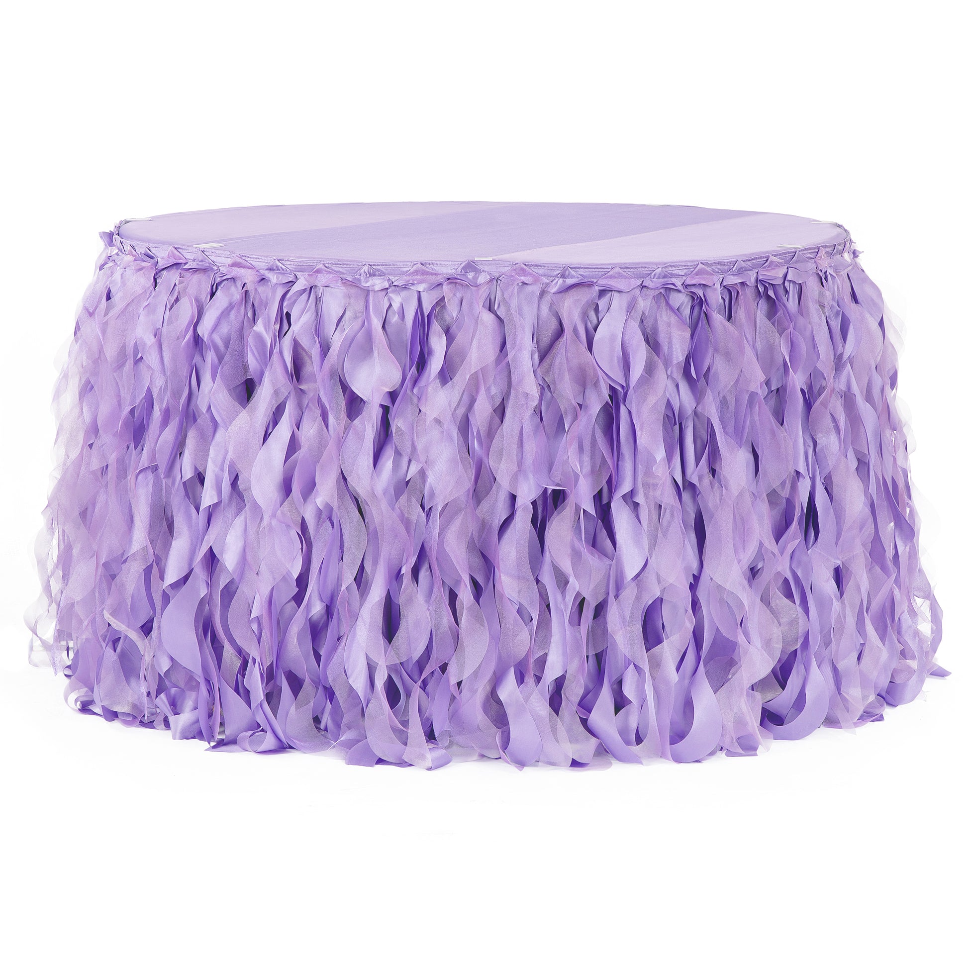 Our Curly Willow product line just became a little more fantastic with our New Curly Willow Table Skirts! Our new, updated Curly Willow design features the same whimsical look of spiraling taffeta and organza with a taffeta lining, only this time with a higher quality, more luxurious grade of material. As an added bonus, it's also available in stunning new colors! Our table skirts make a huge decorative impact at weddings, quinceaneras, birthday celebrations, and more by incorporating color and texture for a beautiful combination. As with traditional table skirts there is a 1" velcro strip sewn into the top, table-facing side, and a tablecloth or table topper will need to be purchased to cover the top of your table. Transform your event into a dreamy wonderland with our New Curly Willow Table Skirts!
