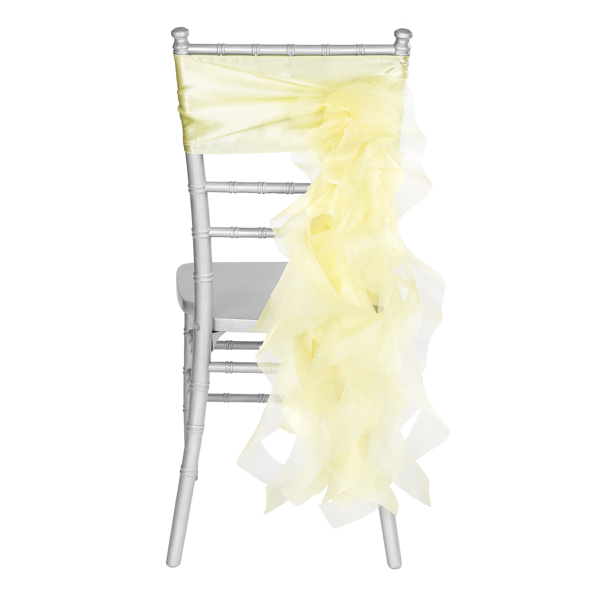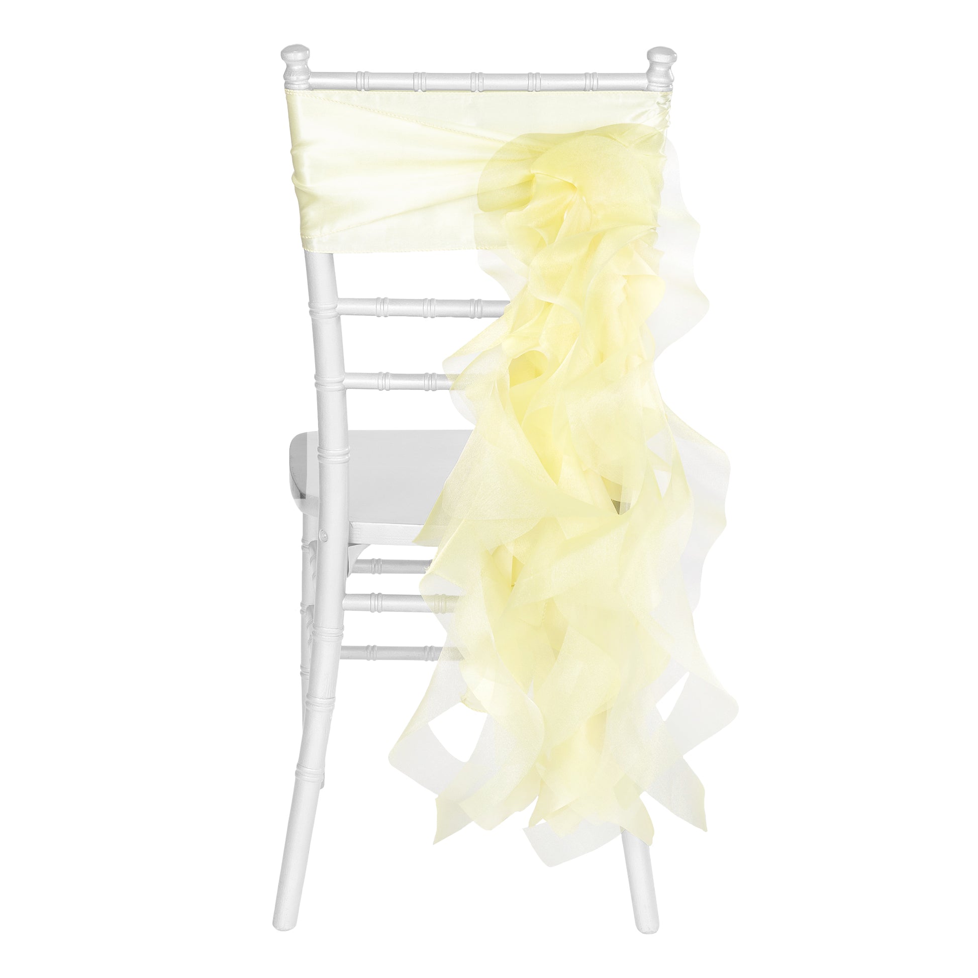 Make your party chairs instantly polished with our Curly Willow Chair Sashes in Pastel Yellow. Choose this ethereal decor in pastel yellow, adding a touch of luxury to your space.
