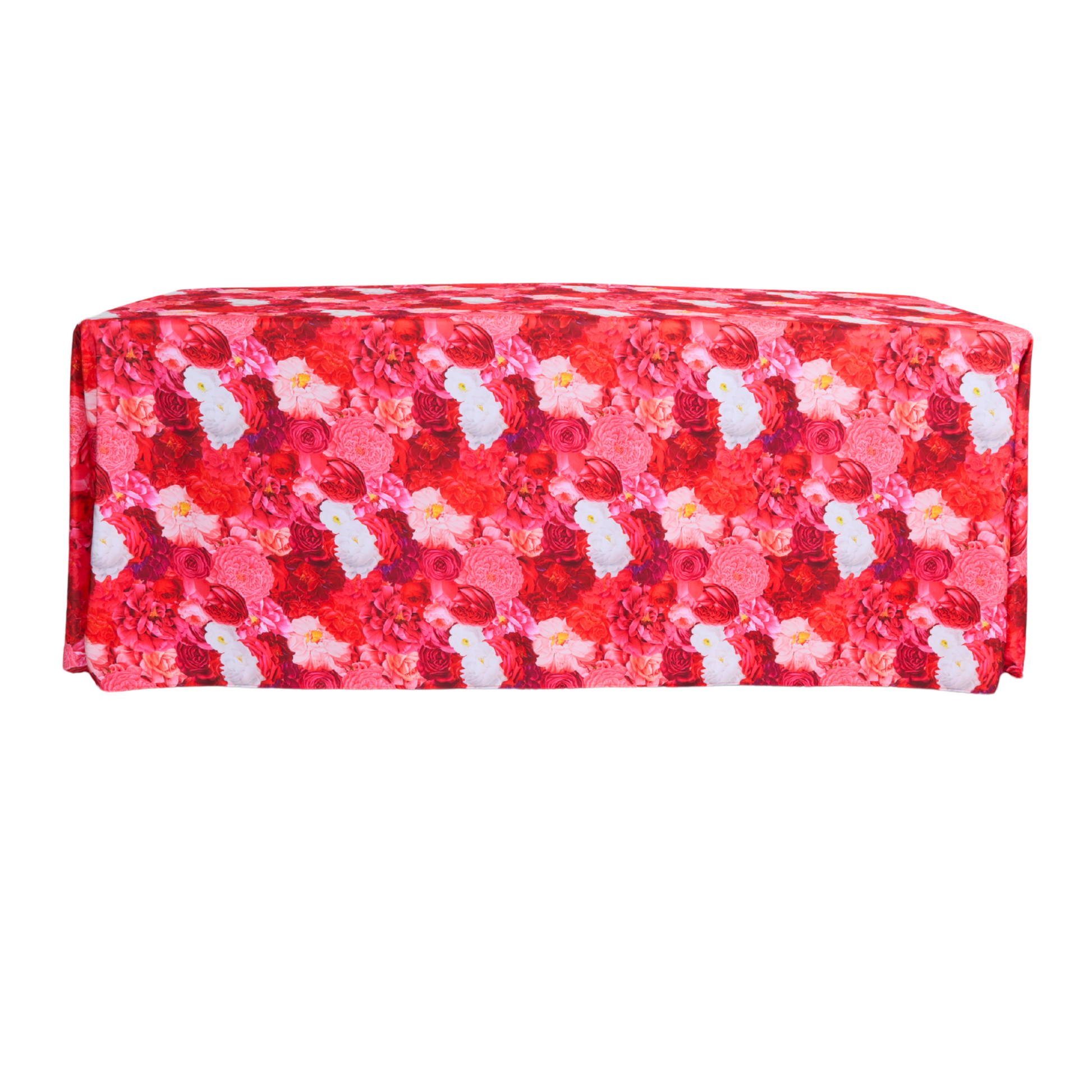Because of their sturdy polyester fabric, these beautiful floral rectangular tablecloths are machine washable, which makes them incredibly low maintenance and ideal for frequent usage in different event decorations. The peony and rose design hemmed on the edges also greatly increases the durability of the fabric by minimizing fraying at the raw edges by folding and sewing together.