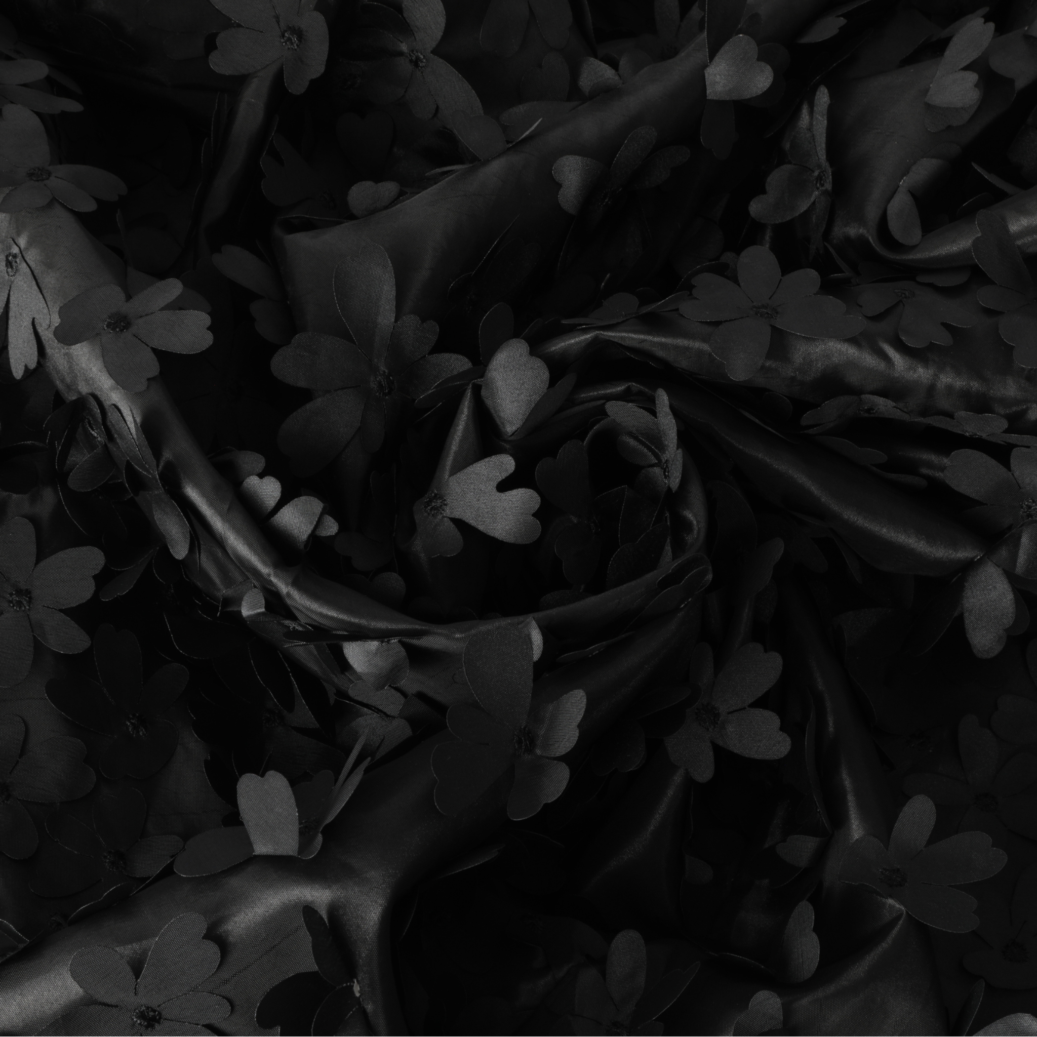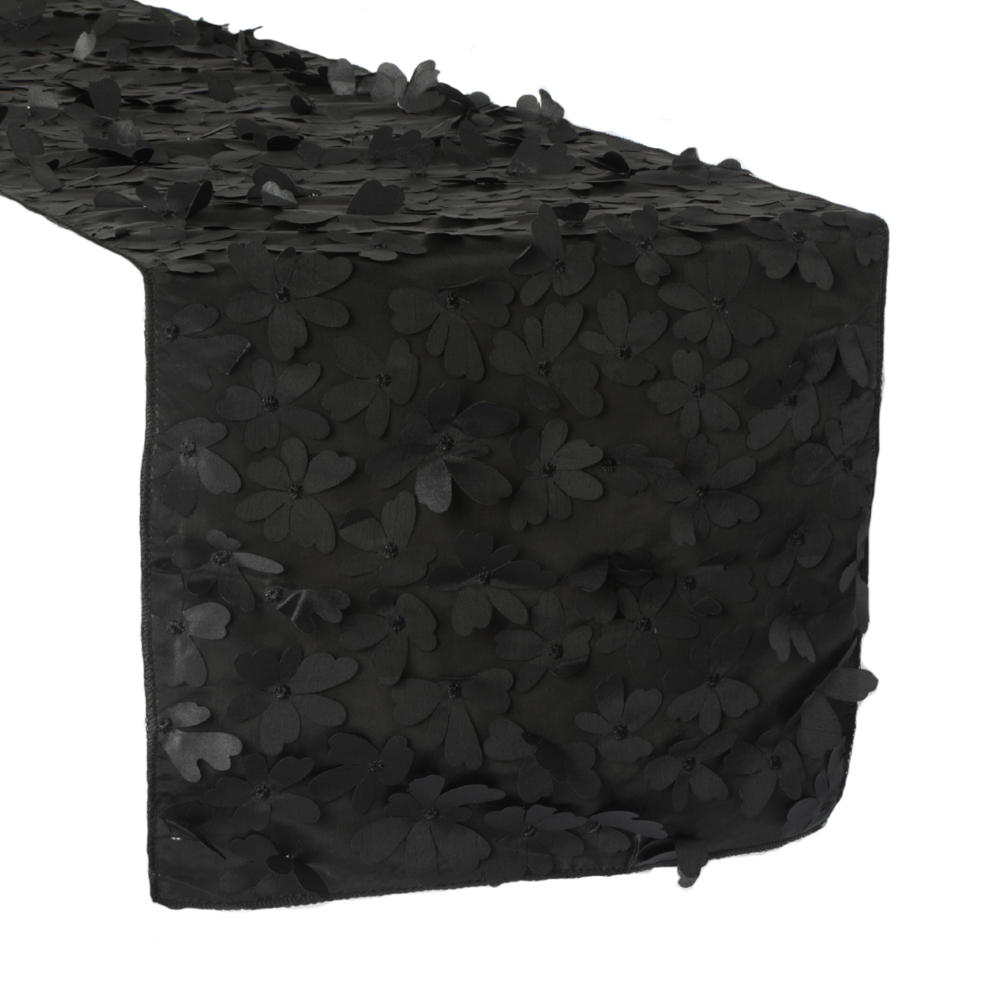 Flower Petal Taffeta Table Runner - Black