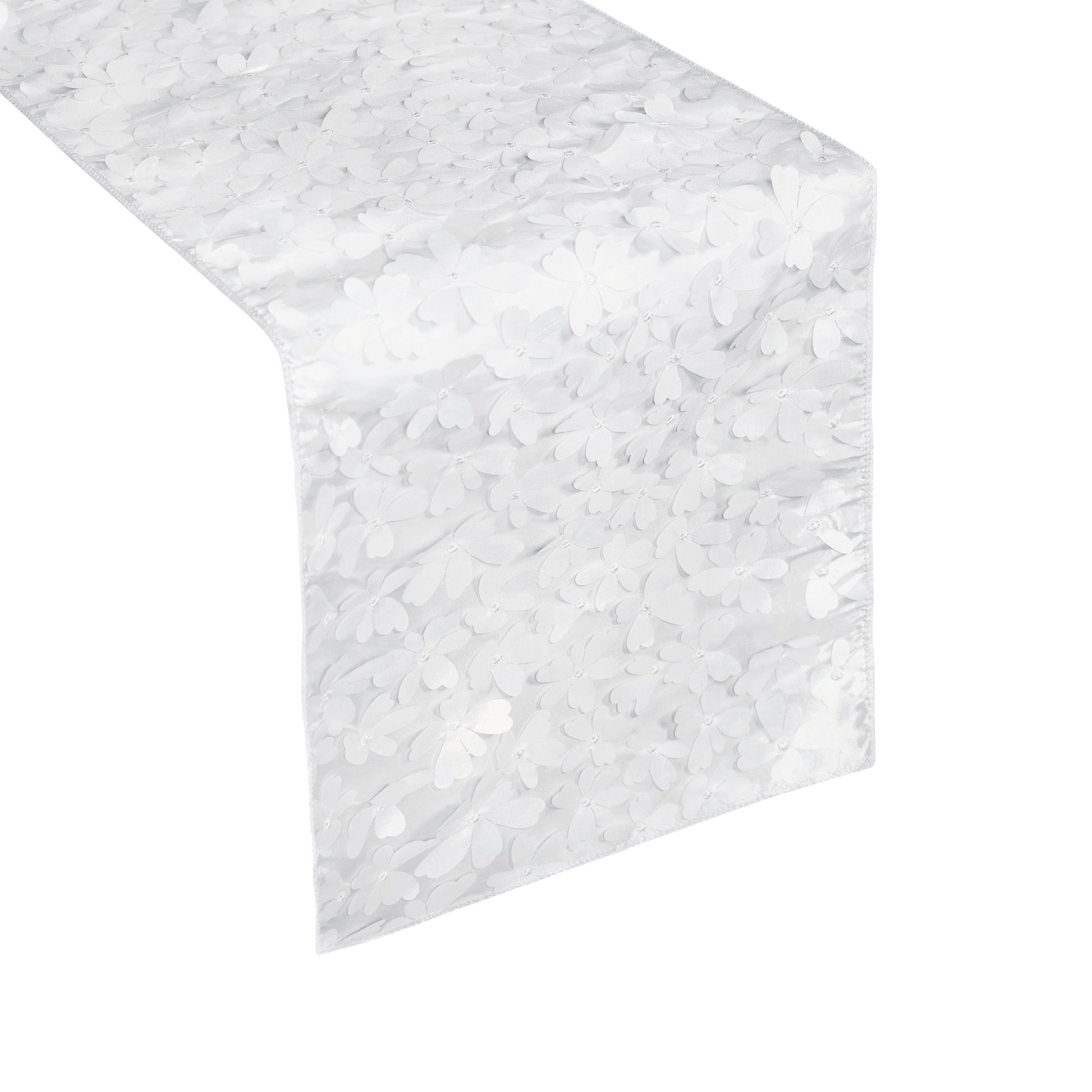 In table arrangement, every little thing matters, and a well-chosen table runner can quietly elevate any gathering's vibe. Because of its intricate design, which evokes a blooming garden, our White Flower Petal Taffeta Table Runner is more than just a decorative accent. It can also be a statement piece that captivates the eye and sparks conversation.