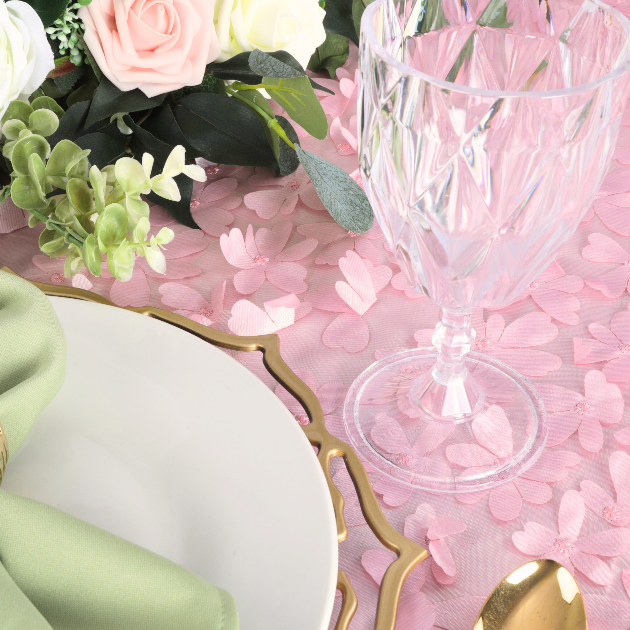Decorating With This Flower Petal Pink Taffeta Tablecloth