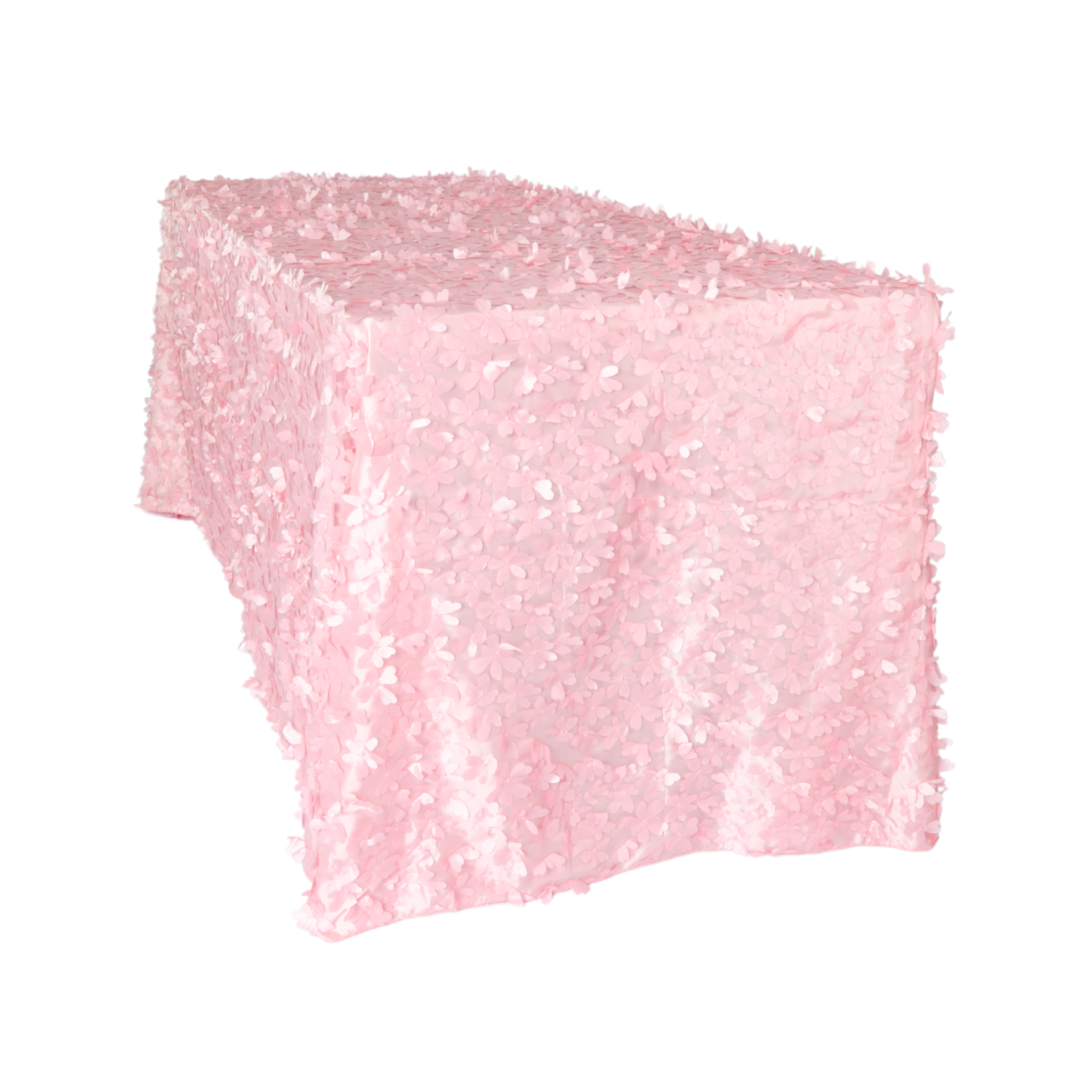 Elevate any occasion with our Flower Petal Taffeta 90”x132” Tablecloth in Pink. Designed for weddings, parties, and banquets, its elegant floral pattern adds sophistication to your decor. Enhance your event effortlessly with this timeless piece.