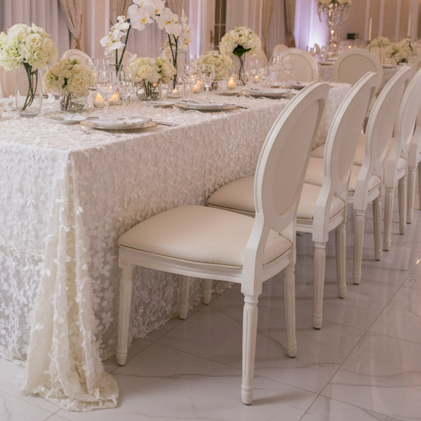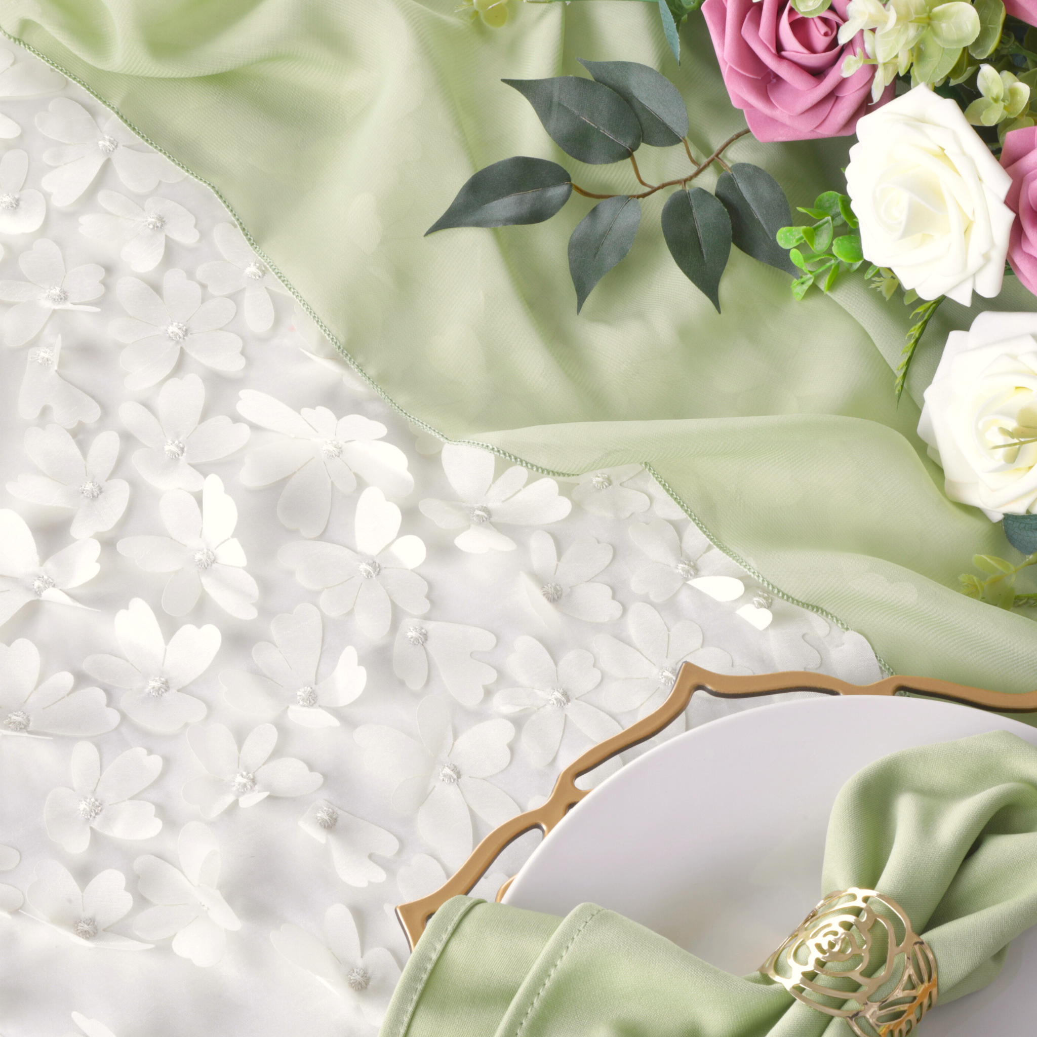 Experience the pinnacle of refinement and elegance with our Flower Petal Ivory Taffeta Tablecloth. Every element has been meticulously refined to guarantee that your event is remembered. This taffeta tablecloth is sure to wow your visitors and improve the atmosphere of any location, whether you're holding a formal dinner party, a luxury event, or a wedding reception.