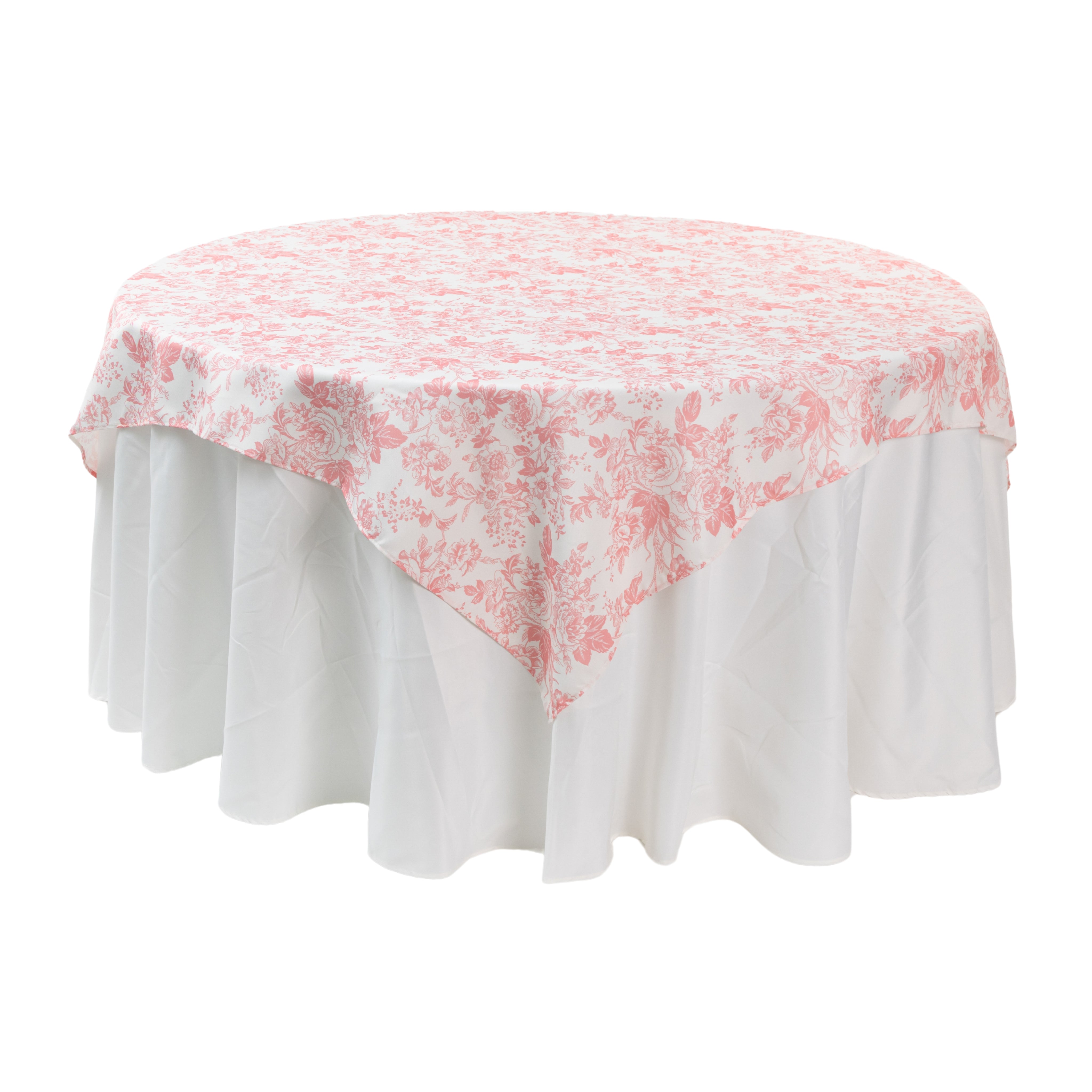 French Toile 72" Square Tablecloth/Overlay (Coral)