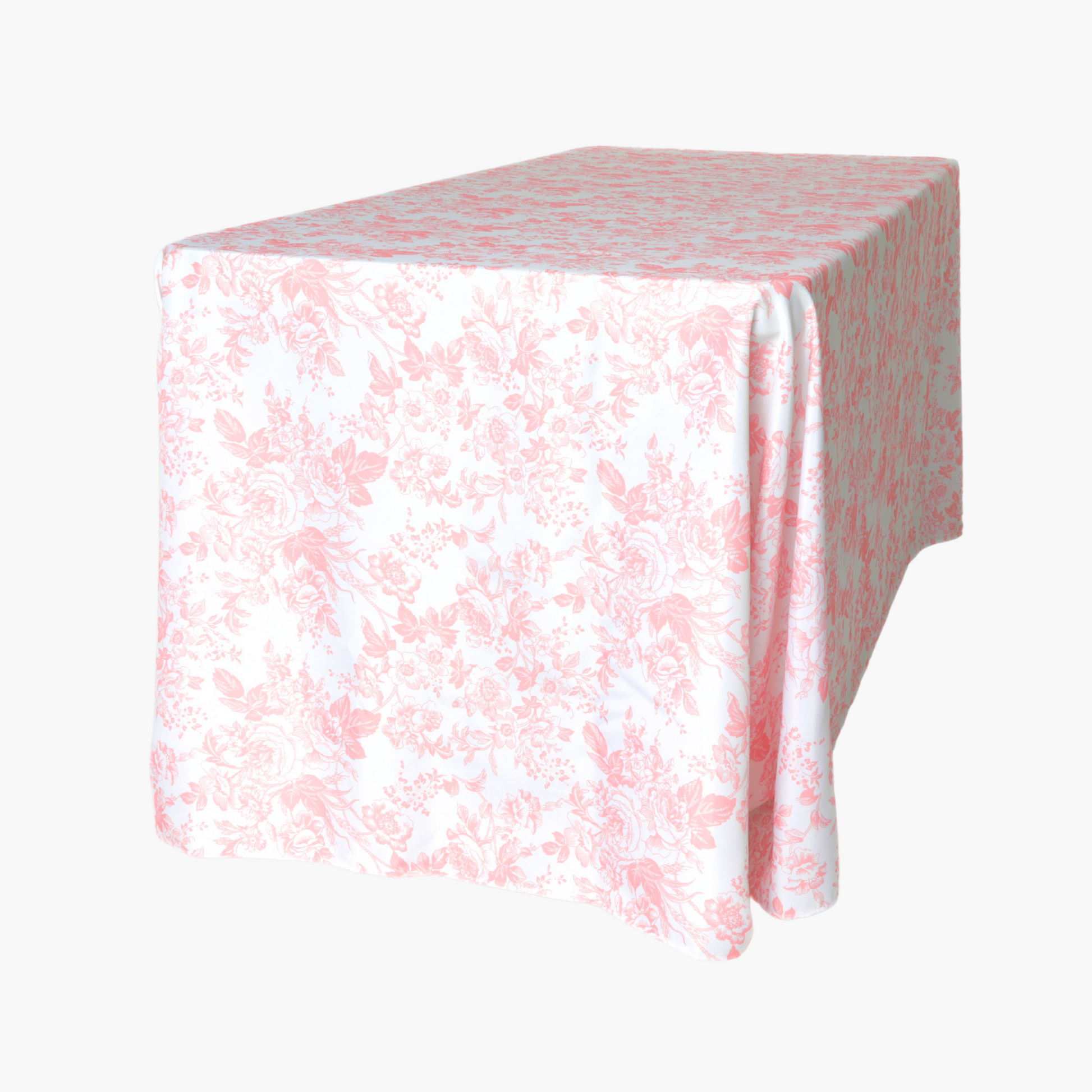 Add opulence and classic glam to your dining space with our Coral French Toile 90"x132" Rectangular Tablecloth. This refined piece combines classic design with aesthetics, welcoming guests to an inviting ambiance.