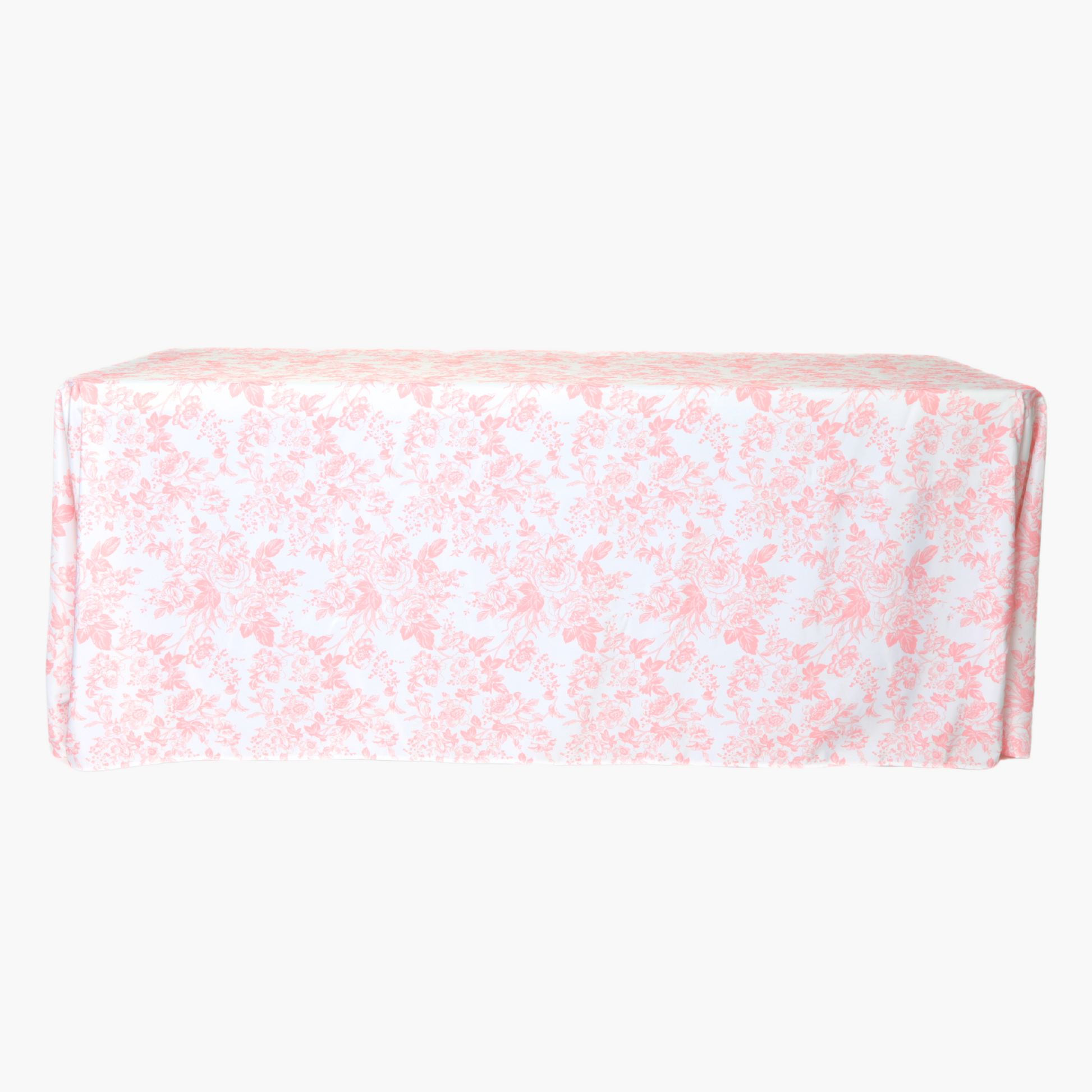 Bring a touch of timeless beauty to your event with the 90"x132" Coral French Toile Rectangular Tablecloth. Inspired by the classic toile de Jouy pattern, this stunning table cover features detailed pastoral scenes and sheer floral motifs and adds a nostalgic charm to your tablescape.