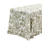 This 90"x132" tablecloth is designed to fit standard rectangular tables. It drapes beautifully to the floor on all four sides of a 6ft rectangular table. On 8ft rectangular tables, it reaches the floor on the long sides, with a sleek 15" drop on the shorter ends.