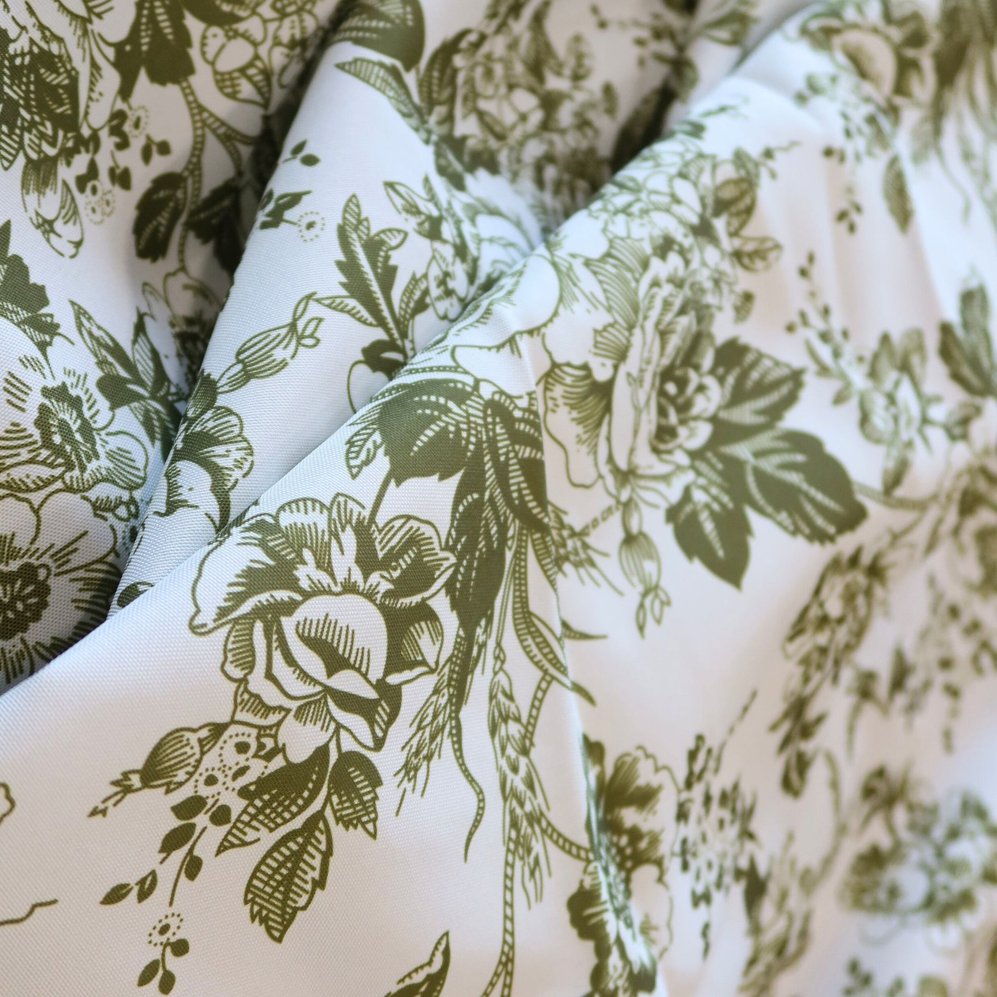 Features of 90"x132" Olive Green French Toile Rectangular Tablecloth