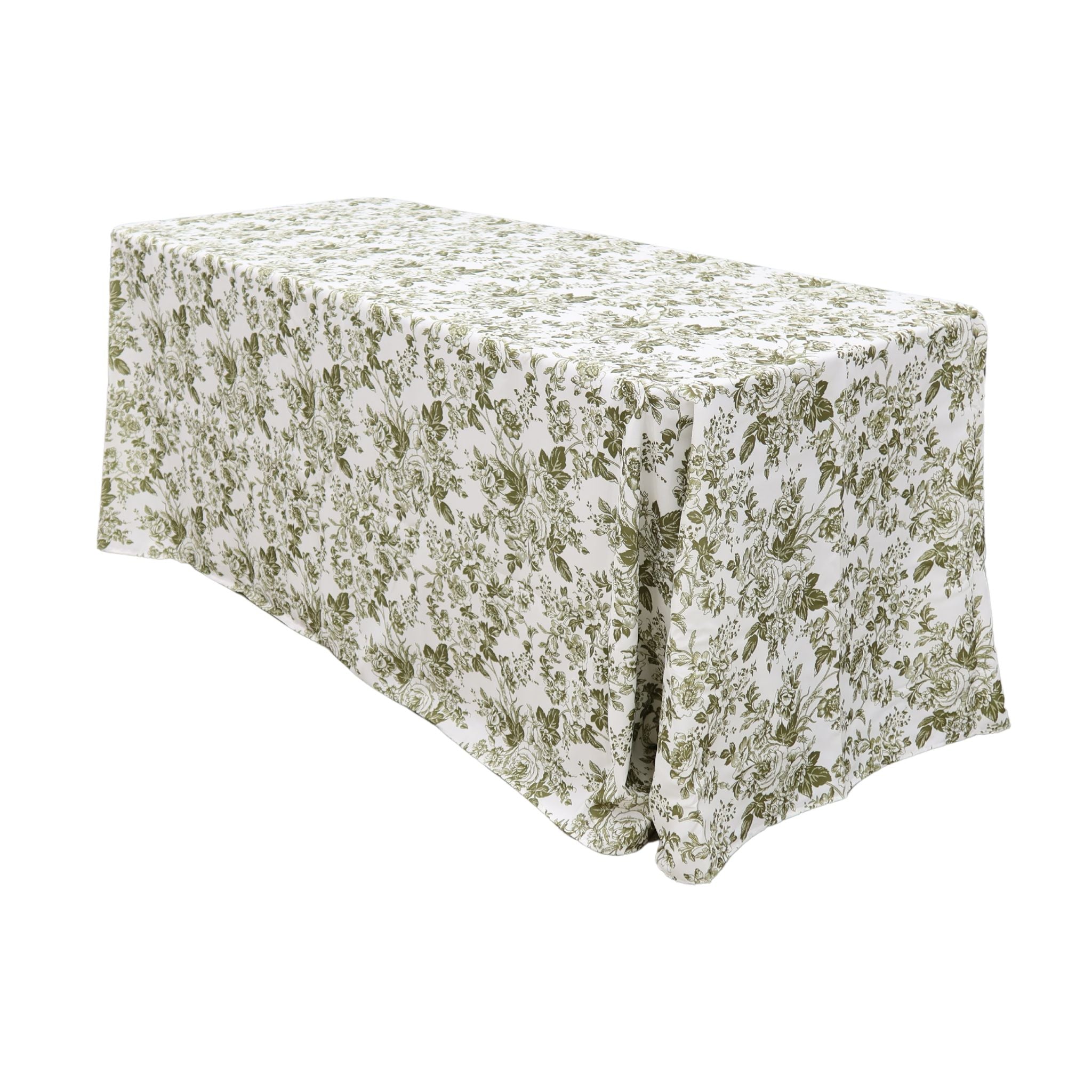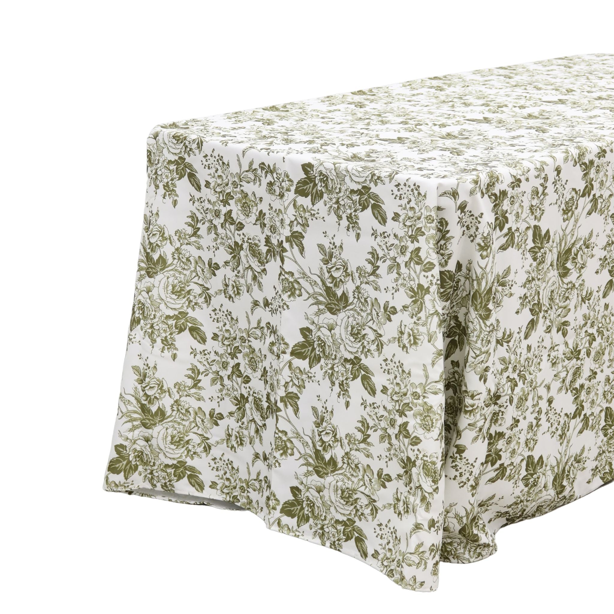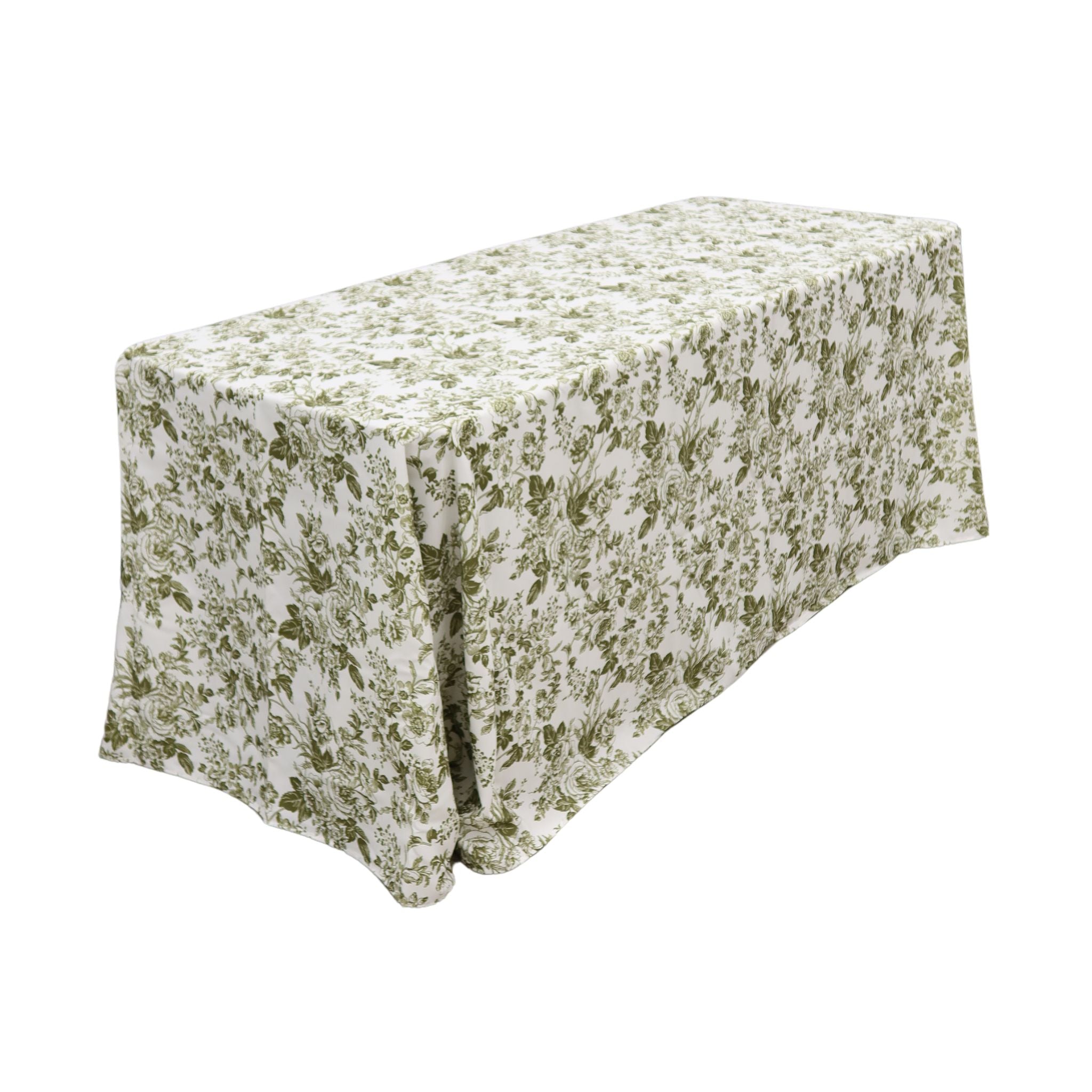 Bring timeless elegance to your tablescape with our French Toile 90"x156" Rectangular Tablecloth in Olive Green. Inspired by the rustic charm of the French countryside, this piece blends vintage style with modern sophistication. Perfect for a romantic outdoor wedding, a garden luncheon, a vintage-inspired event, or other special occasions. This French tablecloth is sure to make a stunning impression.