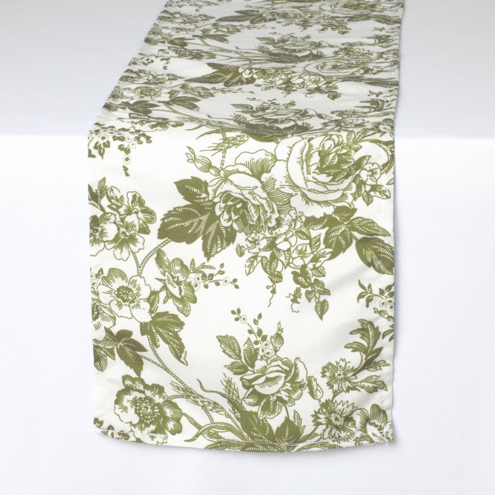 Why Trust CV Linens With Olive Green Toile Table Runner?