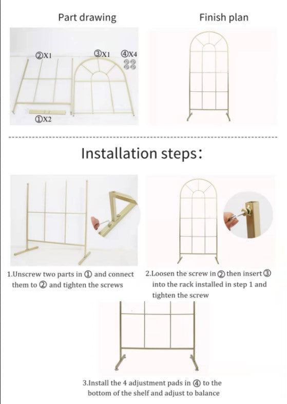 Turn up the appeal of any event space with our Gold French Window Arch Frame Backdrop Party Stand! An ideal way to provide some classic charm, this French arch window prop can be used for weddings, birthdays, baby showers, proms, and many more occasions. It is a perfect focal point for an entryway, ceremony stage, photo backdrop, or behind a sweetheart table. Fill in a boring, empty space with this stylish piece while bringing visual interest! This decorative freestanding faux window pane features a French-inspired arched frame with an exquisite openwork design that makes it easy to adorn with fresh or faux floral and greenery arrangements, drapery fabric, or balloon installations. Use as a decorative piece for your cottage, rustic, contemporary-glam, or European-inspired event designs!