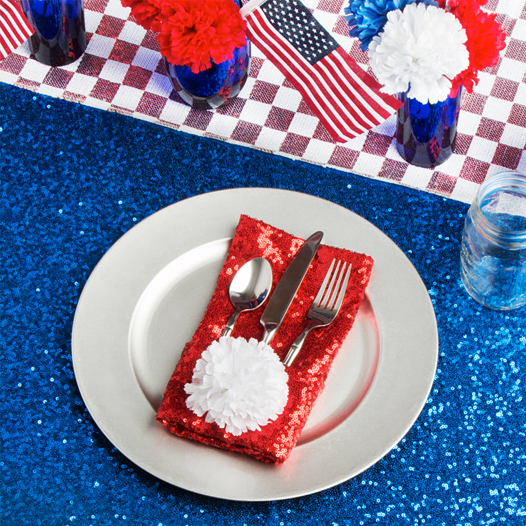Glam your tables place settings with our sparkling Glitz Sequin taffeta napkins. Each beautiful napkin is made of mini sequin rounds intrically sewn onto taffeta. Perfect for an over the top, extravagant and glamorous wedding or special event. These napkins will add a finishing touch of luxurious shine to your chargers.