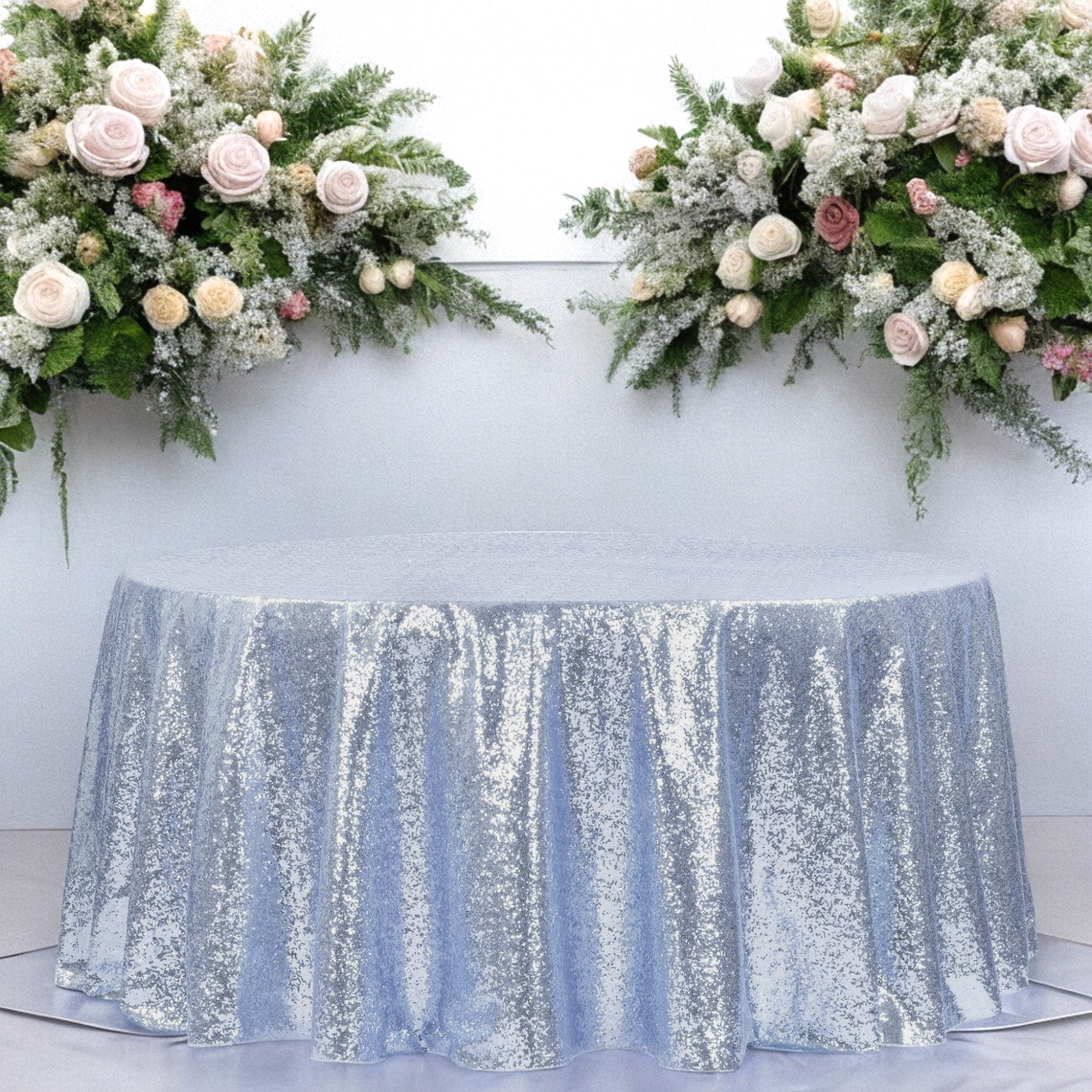 Glitz Sequin 120” Round Tablecloth - Dusty Blue
