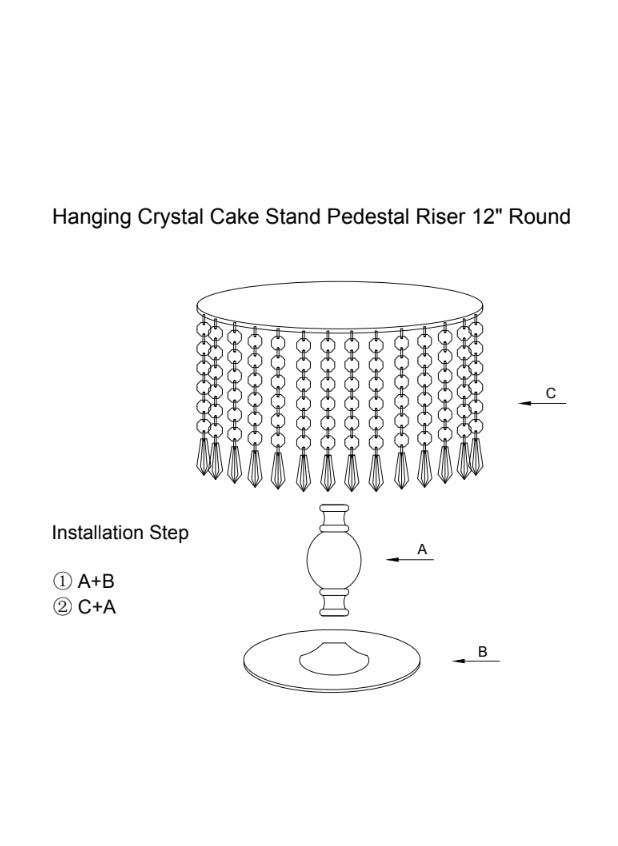 Glamorous and decadent, this Hanging Crystal Cake Stand Pedestal Riser 12" Round - Silver offers your special events supreme elegance. Draped with dozens of acrylic crystal droplets in round and pointed teardrop shapes, this chandelier cake stand is pure drama. The shimmering clear crystals are suspended from a raised silver plated metal tray which serves to amplify their shine. These cascading crystals provide a stunning means of refracting and reflecting light to enhancing the visual depth of your dessert tables and centerpiece decor ideas.