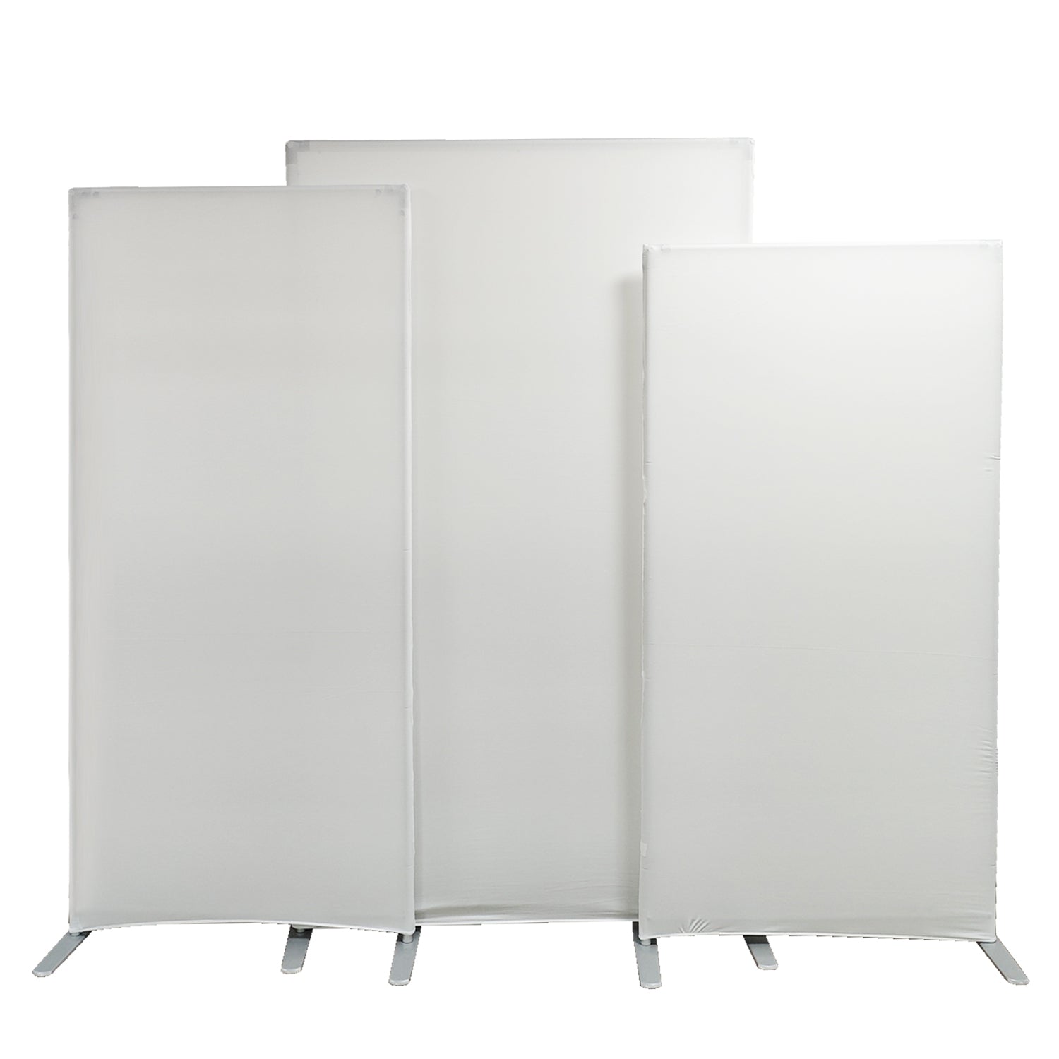 Styling an event space has never been easier with our spandex covers for heavy-duty rectangular backdrop stands. These covers simplify the decorating process but also elevate your event design. With their sleek fit and elegant white tone, these spandex covers create the perfect canvas for your creative touch.