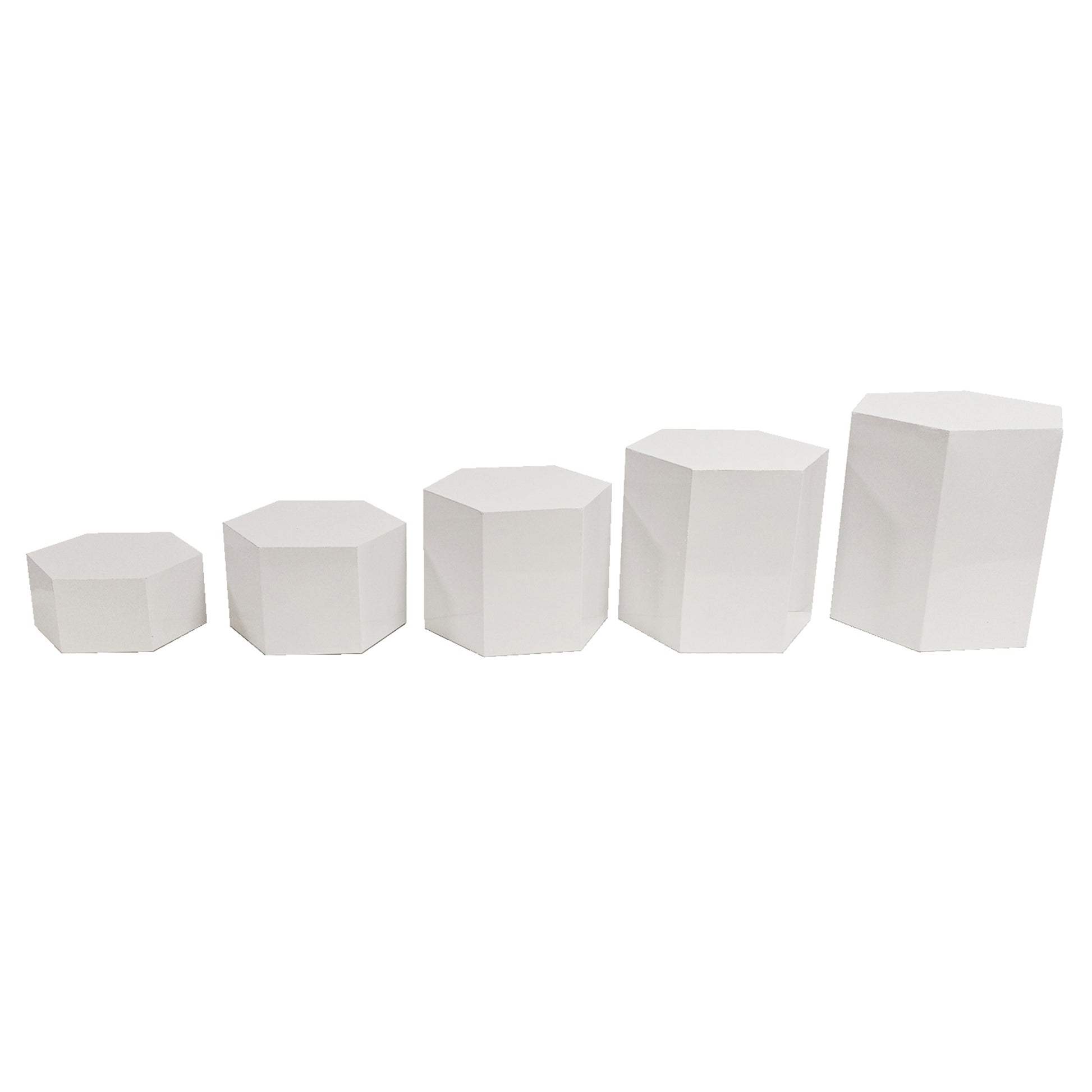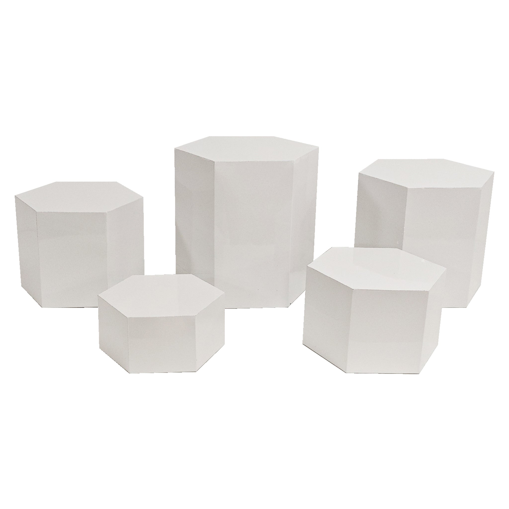 White Hexagon Pedestal Cake/Dessert Display Stands 5 pcs/set