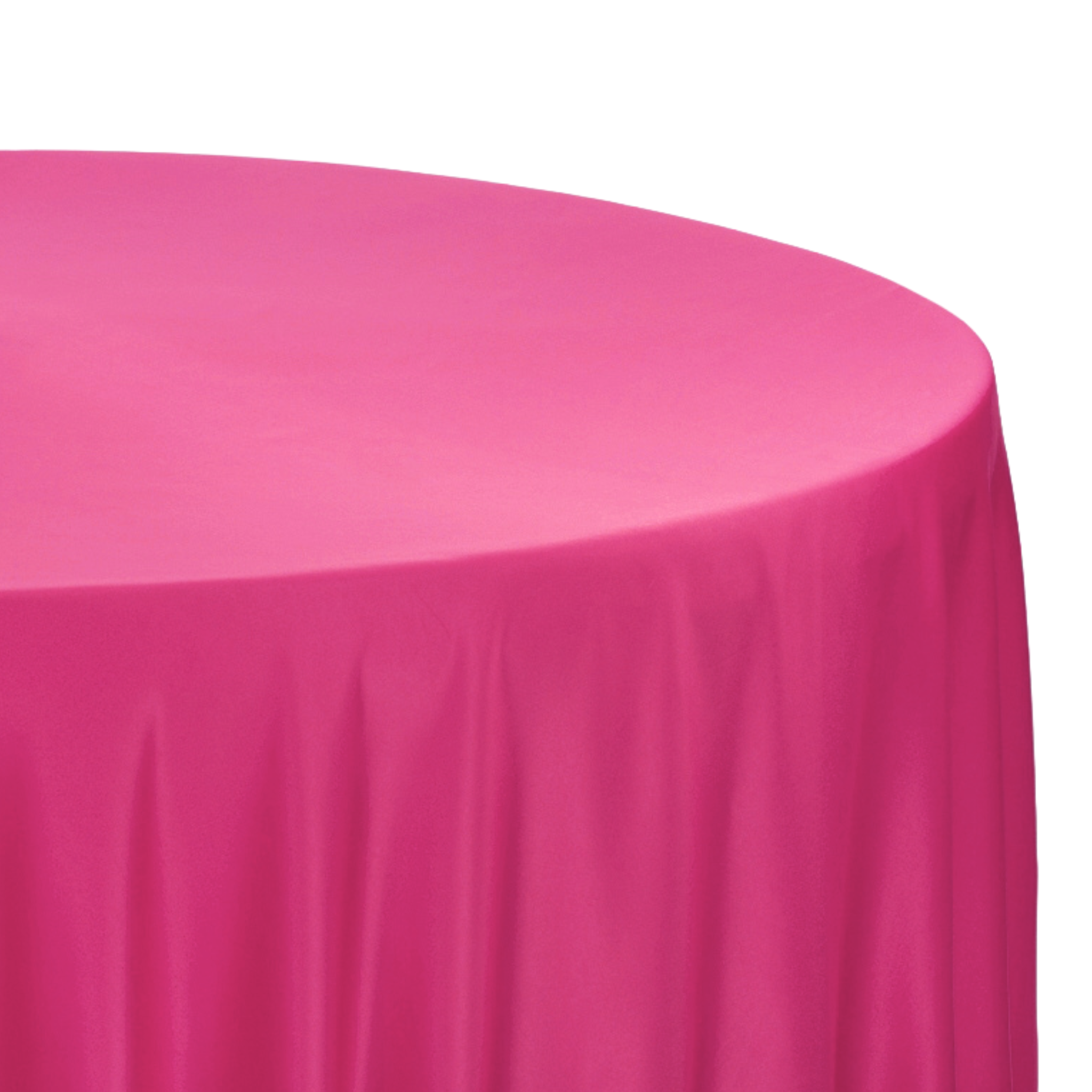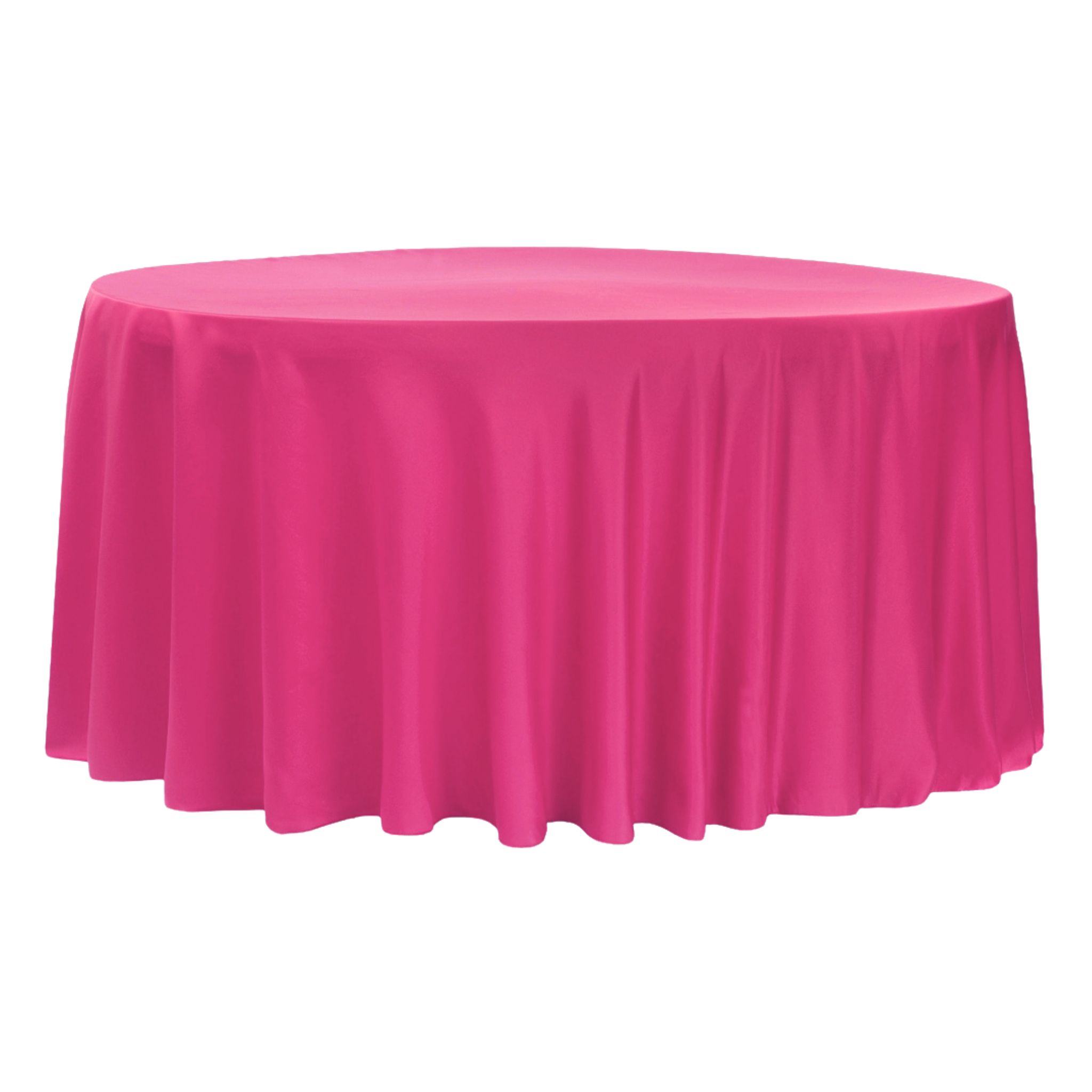 Our 120" Round Magenta Lamour Satin Tablecloth fits tables up to 60" in diameter for a full-length drape that reaches the floor for a polished look. Match it with other event must-haves such as table runners, overlays, chair covers, and drapes.