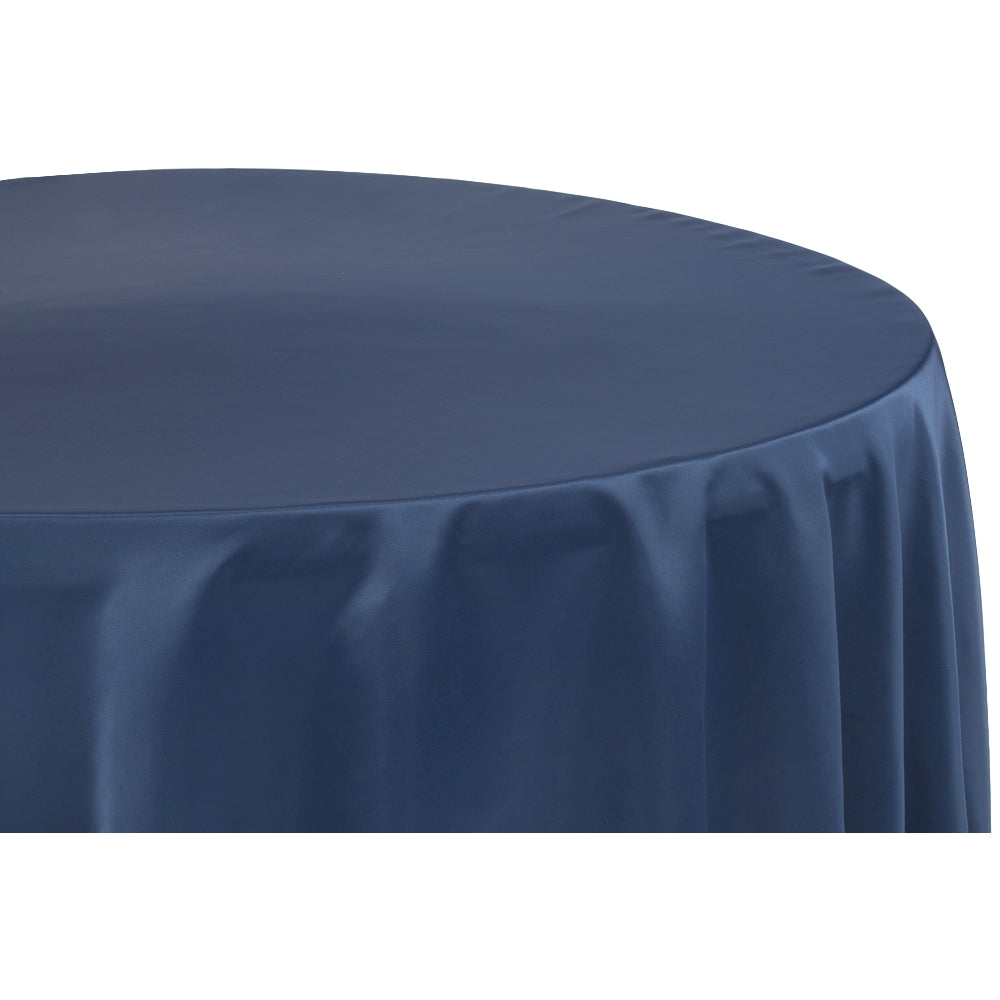 Introducing Our Navy Blue Lamour Satin 132” Round Tablecloth