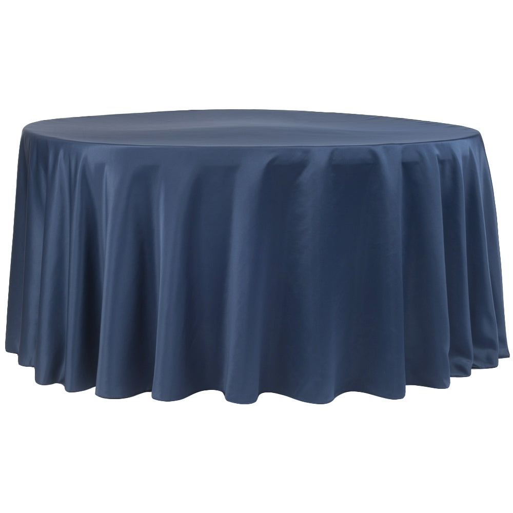 Styling with Navy Blue 132” Round Tablecloth Lamour Satin