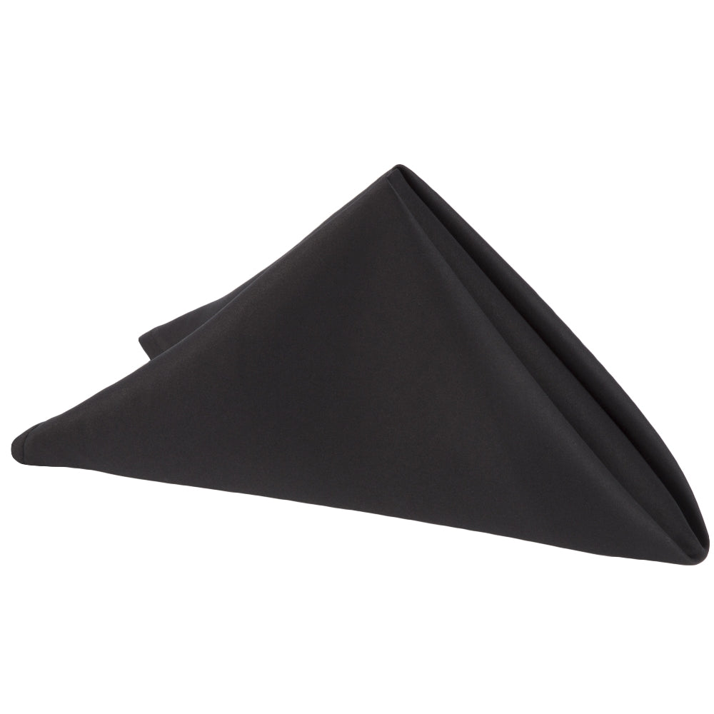 Each napkin is neatly hemmed for a neat, finished edge and comes in a generous 20" x 20" to provide ample space for creative napkin folds. These black Lamour napkins complement other event decor elements like stretch chair covers, chair sashes, and even floral backdrop walls. They're a simple way to create an upscale ambiance with minimal effort.