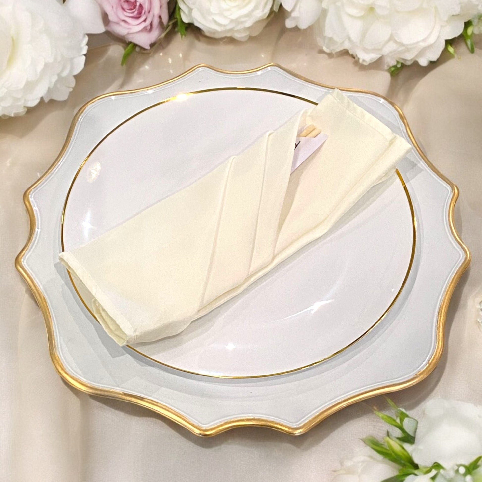 Styling with Lamour Satin Ivory Silk Napkins