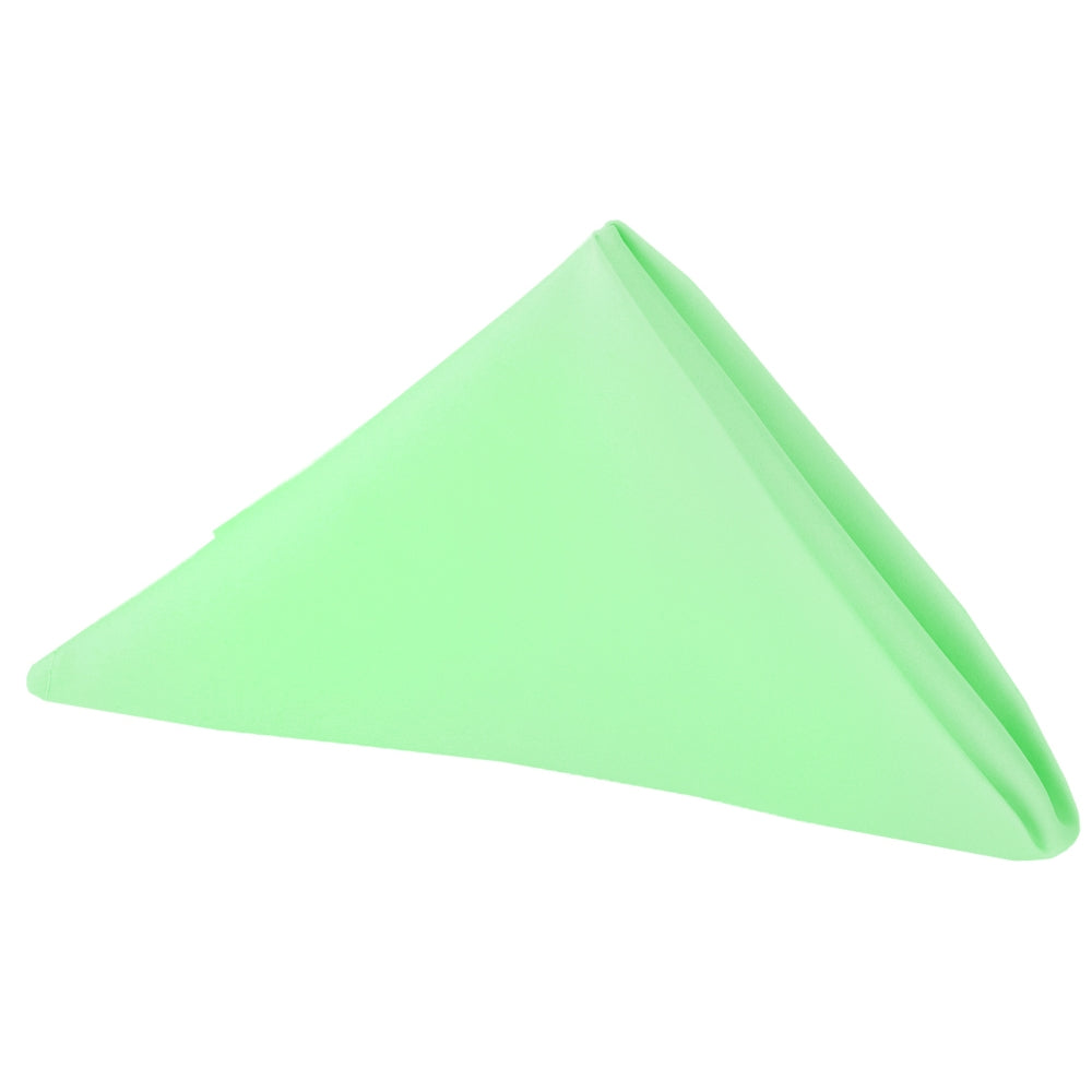 Each napkin is neatly hemmed for a neat, finished edge and comes in a generous 20" x 20" to provide ample space for creative napkin folds. These mint green Lamour napkins complement other event decor elements like stretch chair covers, chair sashes, and even floral backdrop walls. They're a simple way to create an upscale ambiance with minimal effort.