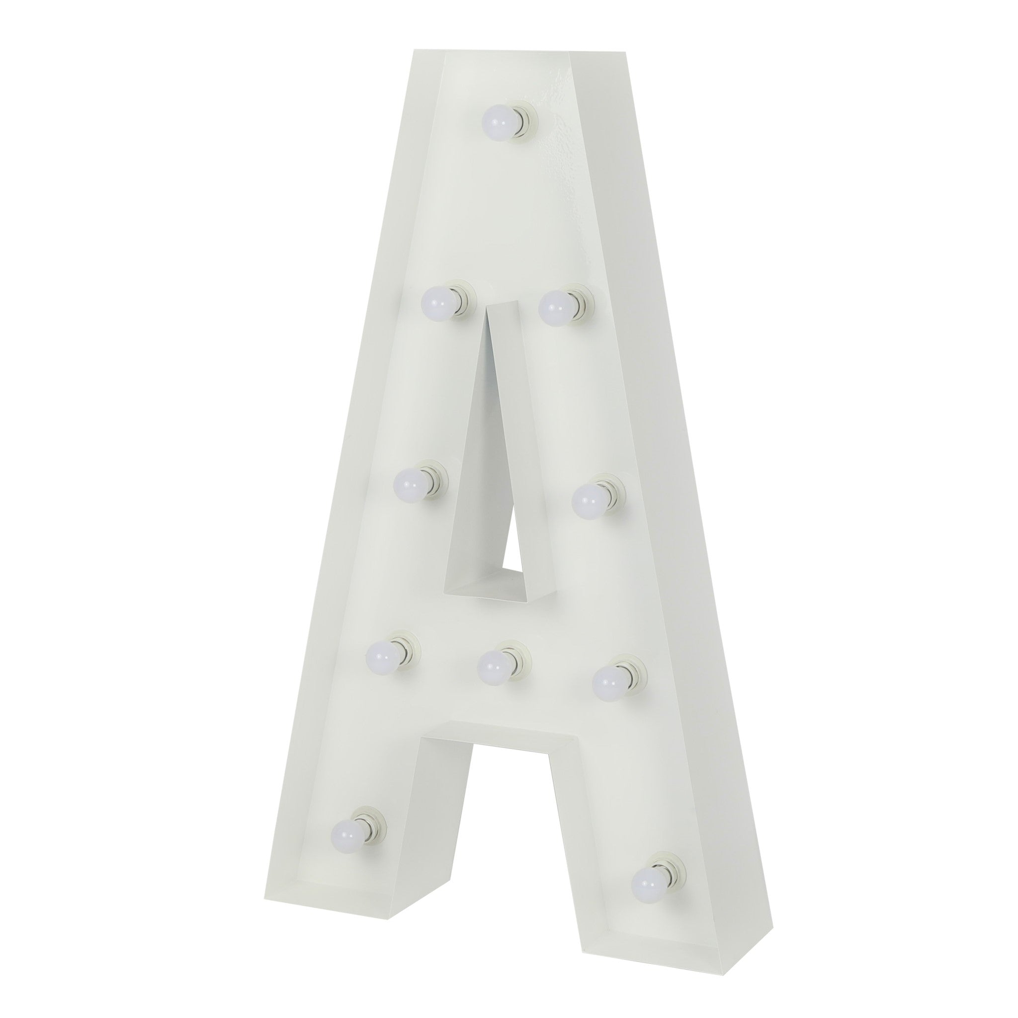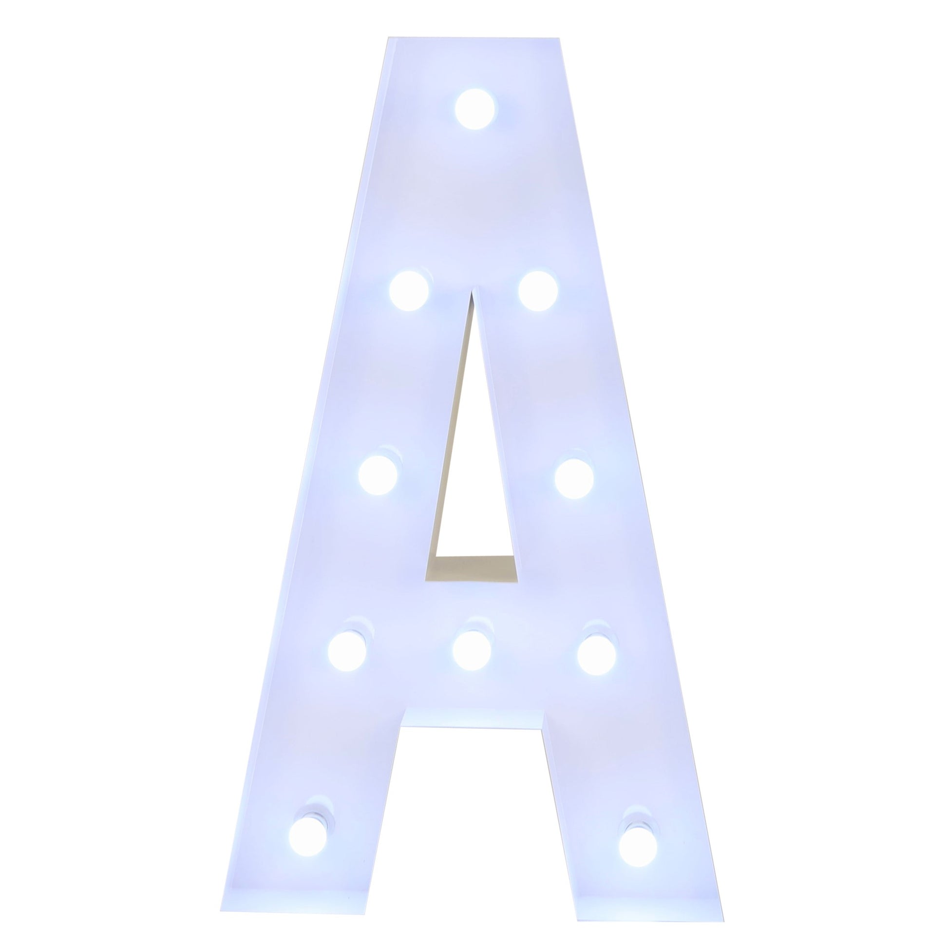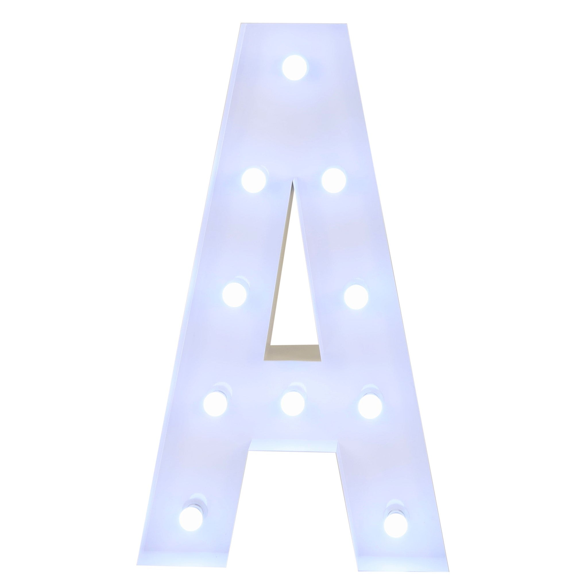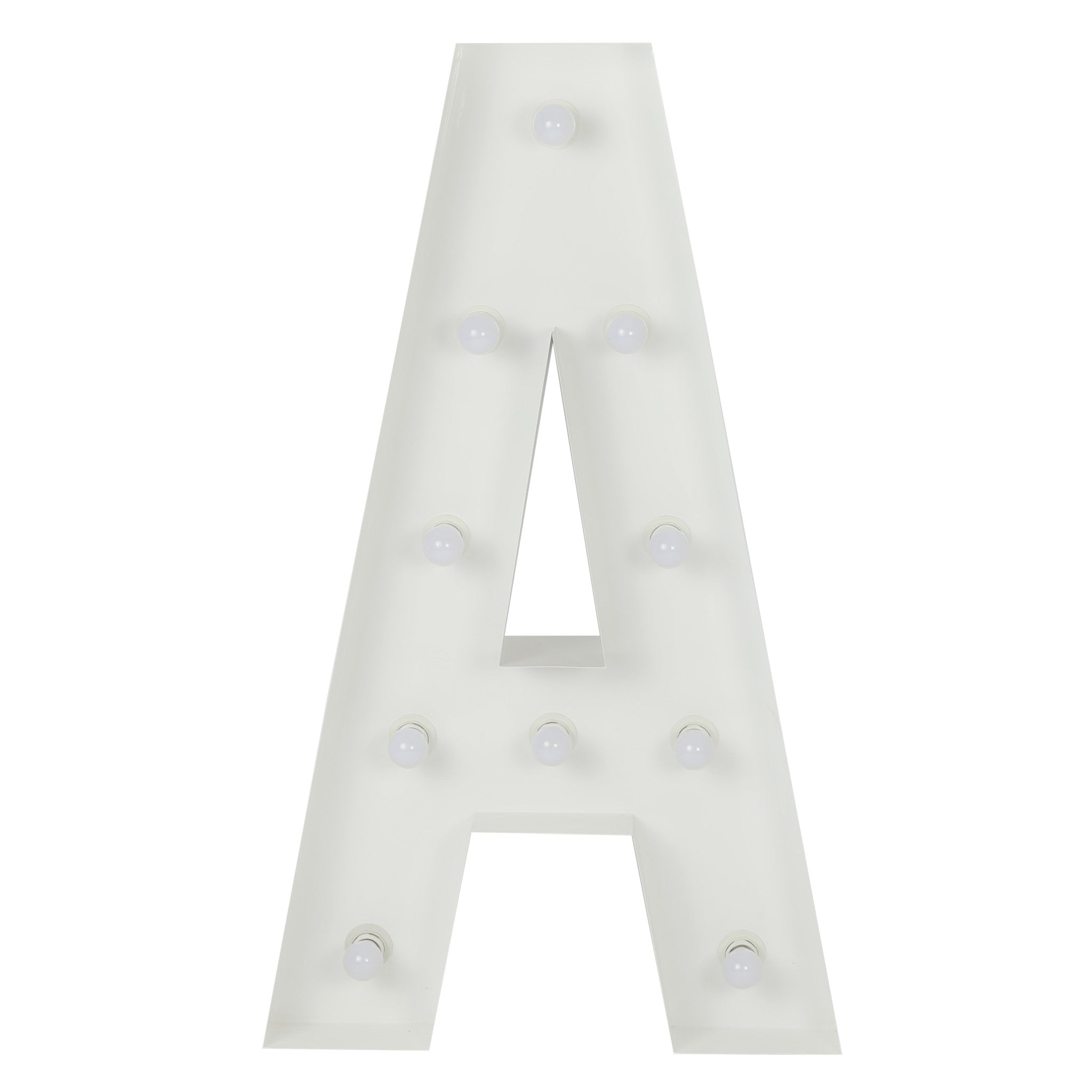 Make every occasion an unforgettable moment with our Large 4ft Tall LED Marquee Letter - A! Crafted of white galvanized metal, this freestanding marquee letter will light up any event space. Get creative and choose from any combination of marquee letters, numbers, or symbols for your own custom party message. The bright LED bulbs will illuminate your messages and create a warm or radiant atmosphere.