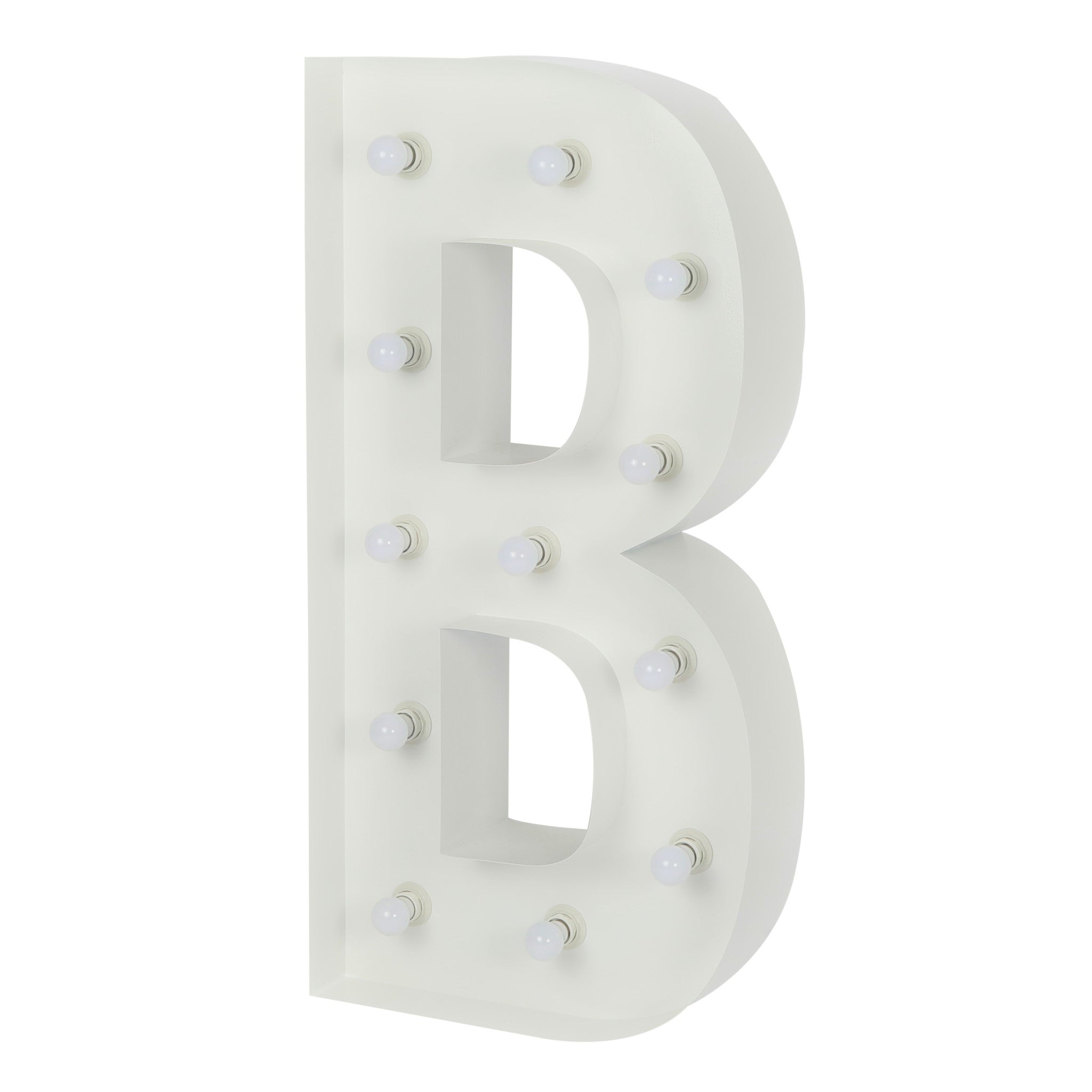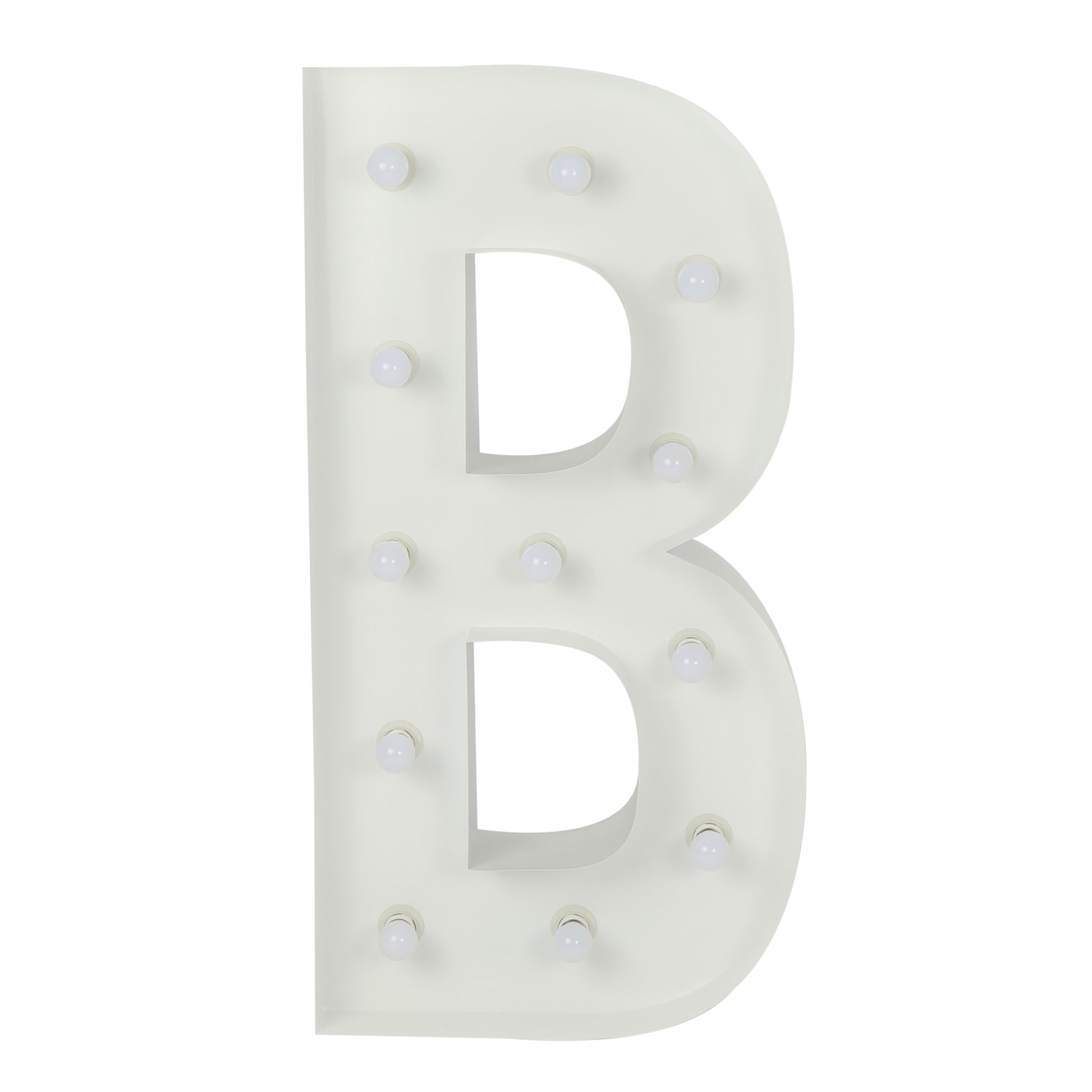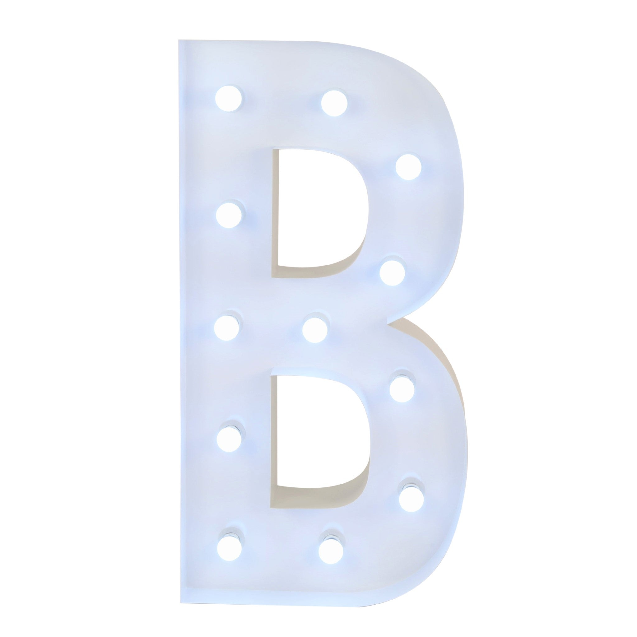 Make every occasion an unforgettable moment with our Large 4ft Tall LED Marquee Letter - B! Crafted of white galvanized metal, this freestanding marquee letter will light up any event space. Get creative and choose from any combination of marquee letters, numbers, or symbols for your own custom party message. The bright LED bulbs will illuminate your messages and create a warm or radiant atmosphere.